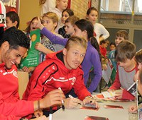 Am heutigen Donnerstag fand die zweite Schulaktion in dieser Woche statt. Für die Kinder der KGS Wilhelm-Schreiber-Straße hieß es heute "Fortuna macht Schule" und zwar zusammen mit Markus Pazurek, Hamdi Dahmani und Michael Kessel. Am Morgen konnten die Profis der Fortuna eine besondere Begrüßung entgegen nehmen: Mit einer LaOla in der Turnhalle empfingen die Schülerinnen und Schüler Pazurek, Dahmani und Kessel. Danach betreuten diese...