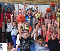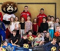 Am Montag der laufenden Woche wartete auf rund 40 Schüler der vierten Klasse der Nikolaus-Groß Schule eine Überraschung: Nico Brandenburger, Moritz Hartmann und Nico Ochojski empfingen die Kinder der Grundschule in der Turnhalle und zeigten ihnen einen kleinen Einblick in die Welt des Fußballs.