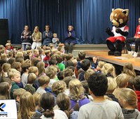 Startschuss der Schulaktion war um 9 Uhr in der Dreifach-Turnhalle der Schule. Torwart Nikolai Rehnen und Mittelfeldspieler Ali Ceylan empfingen die Kinder gemeinsam mit Geschäftsstellenmitarbeitern an...