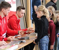 Nach dem Sieg am Wochenende sind die Spieler der Fortuna mit der nächsten Schulakion in die neue Woche gestartet. Diesmal mit dabei: Robin Scheu, Benjamin Pintol und Aaron Eichhorn. Auch Maskottchen Fred durfte...