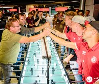 Zum vierten Mal bat die Fortuna die Partnerunternehmen zum Tischfußball. Zum dritten Mal in Folge fand die Veranstaltungen im Showroom des Autohaus Dirkes statt. An insgesamt elf Kicker-Tischen spielten insgesamt 44 Mannschaften um zwei Championsleague-Tickets für die Partie Borussia Dortmund gegen Atlético Madrid.