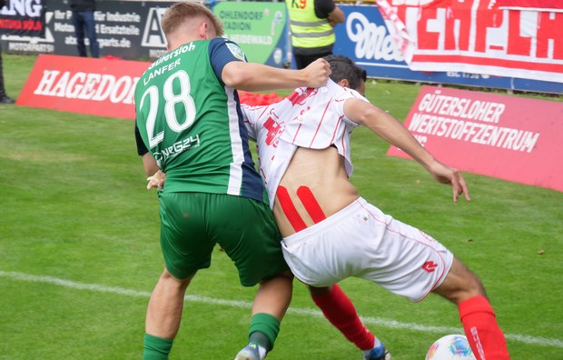 „Es war ein hochintensives Spiel, damit hatten wir aber auch im Vorfeld schon gerechnet. Kurzfristig mussten wir auch noch auf ein paar Ausfälle reagieren. Ich denke, wir haben das Ganze gut gelöst“, sagte David Al-Azzawe, der leidenschaftlich und mit allen Mitteln den Gütersloher Torjäger David Twardzik bekämpft hatte. „Ich scheue keinen Zweikampf. Ich habe da Spaß dran. Er hat mir aber auch nichts geschenkt. Leider trifft er dann per Elfmeter, das war unglücklich“, so der Innenverteidiger, der im direkten Duell aber Punktsieger war.