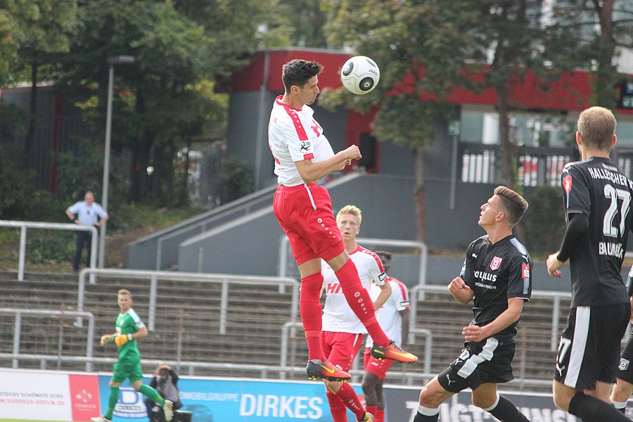 Halle machte gleich von Beginn an Druck und schockte die Fortuna früh. Nach einem Missverständnis in der Fortuna-Abwehr kam El-Helwe an den Ball und versenkte gegen Tim Boss eiskalt. Die Fortuna zeigte sich allerdings nicht lange geschockt und versuchte schnell zu antworten. Dahmani (7.) und Keita-Ruel (8.) scheiterten jedoch an Keeper Schnitzler. Nur kurze Zeit später glichen die Südstädter dann aber aus. Dabei zeigte sich einmal mehr die Standardstärke der Kölner: Kegel flankte einen Freistoß von der rechten Seite an den Fünfer, wo Brandenburger frei einköpfte (10.).