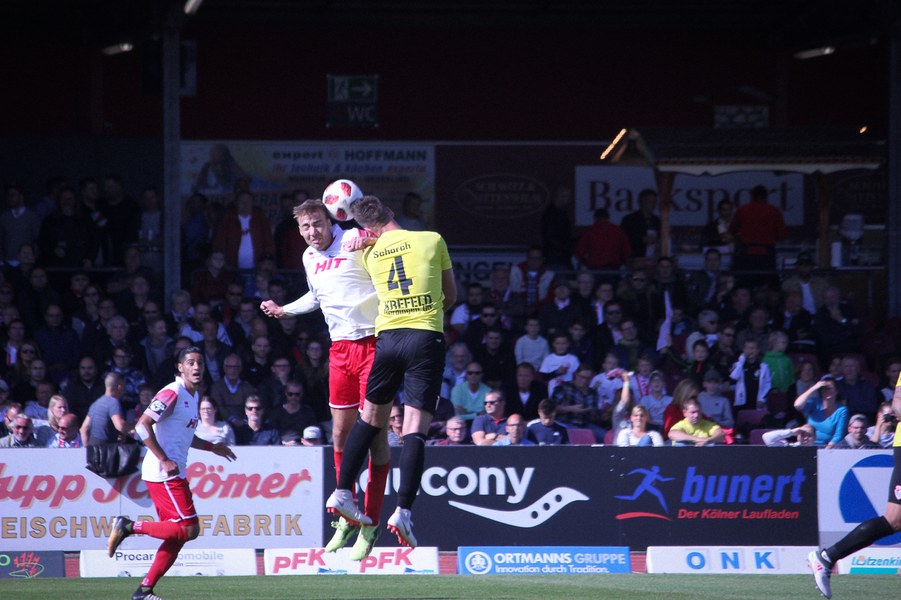 Nachdem beide Mannschaften in der englischen Woche Negativerlebnisse verarbeiten mussten, entwickelte sich im Südstadion früh ein munteres Spiel. Uerdingen suchte mit Dreierkette sein Heil direkt in der Offensive und tauchte über Krempicki direkt gefährlich vor Rehnen auf (3.). Die Fortuna meldete sich ihrerseits nach einer Ecke mit einem Abschluss von Scheu an (7.). Nach einer ausgeglichenen Anfangsphase bekam die Koschinat-Elf das Spiel besser in den Griff. So schaffe man es, die beiden Offensivspieler Aigner und Kefkir aus dem Spiel zu nehmen und früh den Ball zu gewinnen. Ein weiterer Abschluss von Scheu nach Ablage von Hartmann war die Konsequenz (20.). Anschließend gönnte sich das Spiel jedoch eine Verschnaufpause. Es entwickelte sich vor allem ein Abnutzungskampf im Zentrum. Beide lauerten auf Fehler des anderen. So blieb es lange bei einem harmlosen Distanzschuss von Aigner für Krefeld (34.). Auch wenn beide Mannschaften noch einmal offensiv einen Gang nach oben schalteten, sollte nichts mehr vor den Toren passieren. Vielmehr sorgte eine Verletzung für den traurigen Schlusspunkt: Kurz vor dem Pausentee musste Uerdingens Kapitän Erb mit Verdacht auf Kreuzbandriss raus. Mit dieser Hiobsbotschaft ging es in die Kabine.