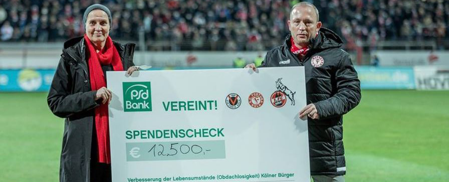 Am 8. Oktober 2021 wurde erstmal der PSD-Bank Cup ausgetragen. Im Sportpark Höhenberg trafen die bedeutendsten Kölner Fußballteams, der 1. FC Köln (1. Bundesliga), Fortuna Köln (Regionalliga West) und Viktoria Köln (3. Liga) aufeinander. Bei dem Turnier stand nicht das Sportliche im Vordergrund. Im Rahmen des Turniers kam eine große Menge an Spenden zusammen. Die Erlöse wurden an Einrichtungen für einen guten Zweck gespendet, in diesem Falle für Obdachlose Menschen in Köln für ein menschenwürdigeres Leben. Zum Nachholspiel gegen Rot-Weiss Essen wurde der Scheck im Südstadion feierlich, vor mehr als 6.000 Zuschauern, an die Geschäftsführerin Susanne Hahmann von der Diakonie Michaelshoven überreicht.