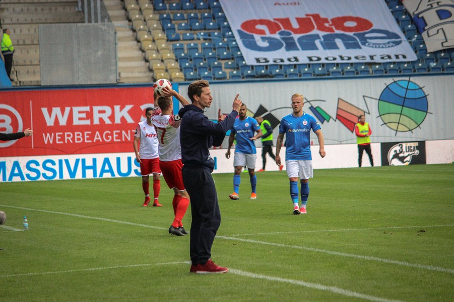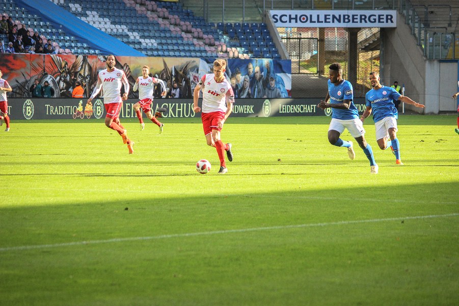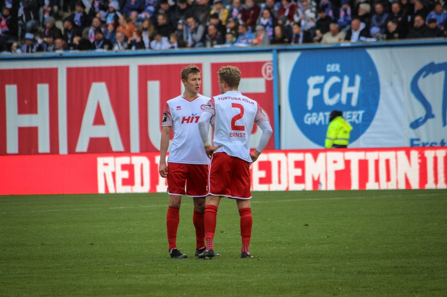 Ohne Wechsel ging es in den zweiten Abschnitt, der in ruhigerem Tempo begann. Breier und Hartmann probierten sich für ihre Farben jeweils mit einem Abschluss (50./55.). Rostock nahm einen Gang raus aus der Partie, ließ die Offensive der Fortuna aber nicht zur Entfaltung kommen. Trotzdem war man dem nächsten Tor in Person des wuseligen Biankadi näher, der aber an Rehnen scheiterte (66.). Dann meldete sich die Elf von André Filipovic aber endgültig in der Partie an: Einen Freistoß von der Stafraumkante brachte Kegel im Tor unter (69.). Der Anschlusstreffer hauchte der Fortuna spürbar neues Leben ein: Scheu scheiterte kurz darauf aus spitzem Winkel am Außennetz (71.). Hansa blieb zunächst passiv, während die Fortuna mutiger wurde und auch über die Innenverteidiger Kyere und Uaferro immer wieder anschob. Es gelangen nun auch vermehrt die Kombinationen in der Offensive, sodass man sich in Hansas Hälfte festsetzte. Zu selten kamen die Kölner aber gefährlich in den Rostocker Strafraum, auch wenn Eberwein eine Schiek-Flanke kurz vor Schluss aus kurzer Distanz verpasste (82.). So blieb es letztlich beim 3:1-Heimsieg für Hansa Rostock.