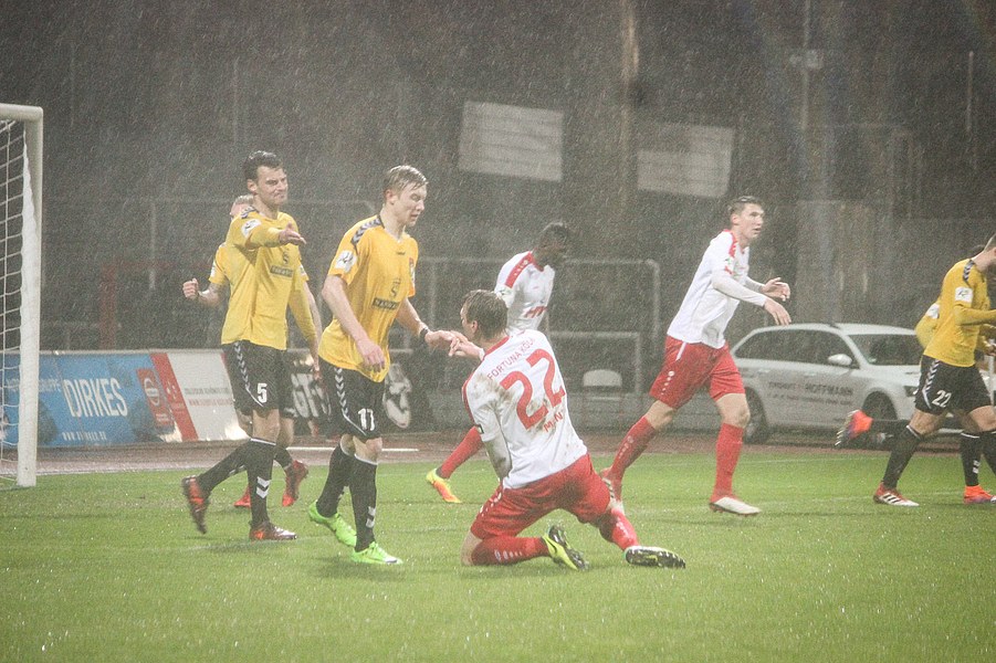 So spielte die Fortuna: Boss - Ernst, Kyere, Menz, Pazurek (81. - Bröker) - Kegel, Brandenburger (Kessel - 62.) - Farrona Pulido (Kurt - 75.), Dahmani, Scheu - Keita-Ruel