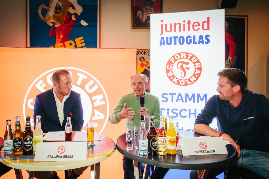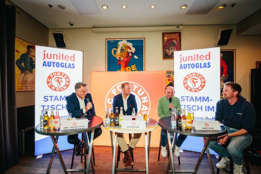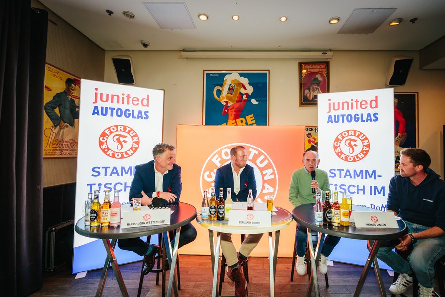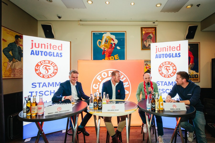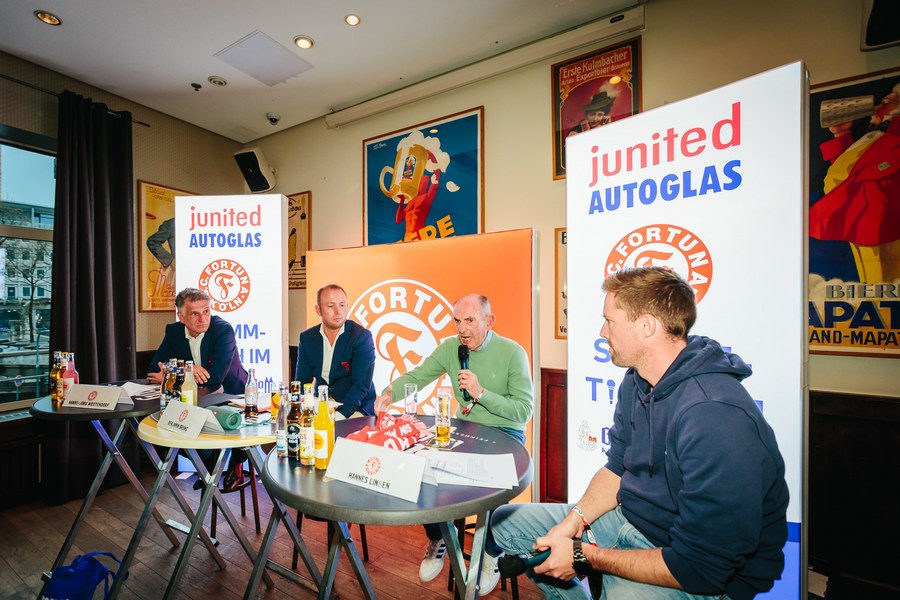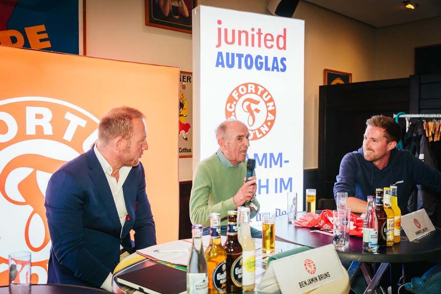 2. junited AUTOGLAS Stammtisch der Fortuna – Hannes Linßen, Benjamin Bruns und Hanns-Jörg Westendorf plaudern über alte Zeiten und Zukunftspläne