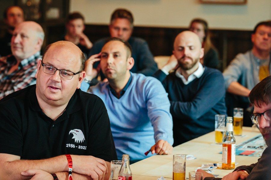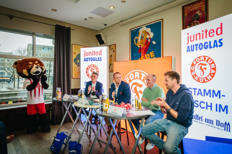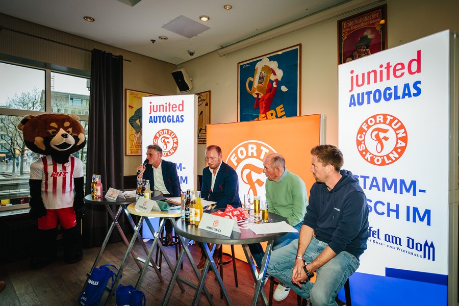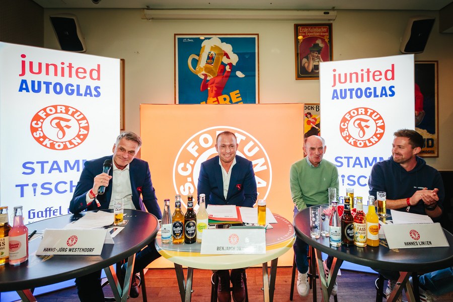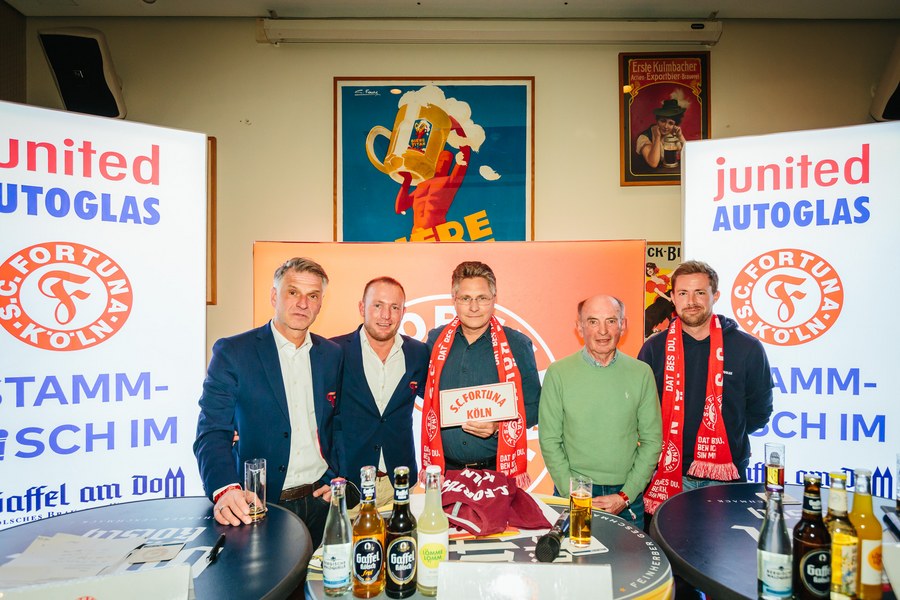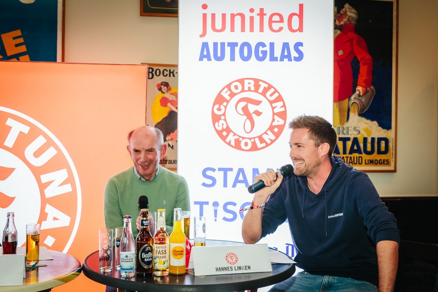2. junited AUTOGLAS Stammtisch der Fortuna – Hannes Linßen, Benjamin Bruns und Hanns-Jörg Westendorf plaudern über alte Zeiten und Zukunftspläne