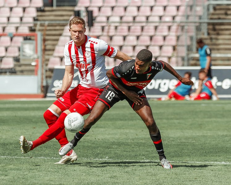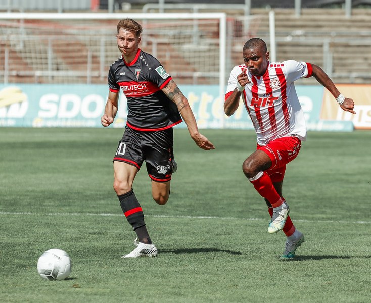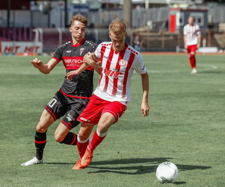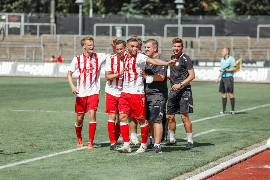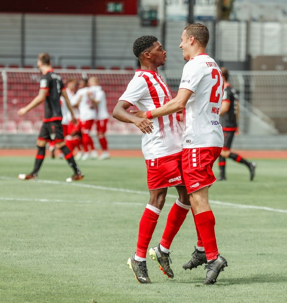 Im ersten Spiel der neuen Regionalliga Saison war der FC Wegberg-Beeck bei strahlendem Sonnenschein zu Gast im Südstadion. In der Anfangsphase schenkten sich beide Mannschaften nichts und führten intensive Zweikämpfe. Zunächst fand das Spielgeschehen überwiegend im Mittelfeld statt, dabei überließ der FC Wegberg-Beeck meist der Fortuna den Ball und lauerte auf Konter. Die erste gute Chance der Partie gehörte dann aber den Wegbergern. Poggenberg foulte einen Spieler der Gäste am Rande des Strafraums. Den fälligen Freistoß brachte Jeff-Denis Fehr in den Strafraum, wo einer seiner Teamkollegen zum Kopfball kam, aber Fortuna Schlussmann André Weis parrierte. Im Gegenzug spielte die Fortuna schnell nach vorne und holte in der 15. Spielminute die erste Ecke heraus. Die Ecke kam von der rechten Seite in den Strafraum, wo Kapitän Jannik Löhden zwar an den Ball kam, diesen aber nicht kontrollieren konnte. Ubabuike holte sich anschließend den Ball und drückte ihn zur 1:0 Führung (16. Minute) über die Linie. Danach machte die Fortuna schnell weiter und bemühte sich sofort zu erhöhen. Nur zwei Minuten später kam Rumpf nach einer Ecke von Najar zum Kopfball, der Ball flog allerdings knapp über die Latte. In der 26. Spielminute gab es dann die nächste große Chance auf 2:0 zu erhöhen: Imbongo schickt Ubabuike links auf die Reise, der legte quer auf Marquet, doch dessen Gegenspieler passte auf und konnte zur nächsten Ecke für Fortuna klären. Diese resultierte in einer weiteren Ecke, welche von Najar hereingebracht wurde und keinen Abnehmer fand. Fortuna war in der restlichen ersten Halbzeit klar überlegen, doch ein weiterer Treffer wollte nicht gelingen.