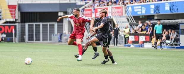 In einer chancenarmen Partie hatte Matter auch gleich die Führung auf dem Fuß. Aber seinen Versuch wehrte der gegnerische Keeper Arne Schulz in der kurzen Ecke ab (6.). Aus dem Nichts erhielten die Gäste dann die Chance zur Führung. Matter legte sich den Ball im Paderborner Strafraum eigentlich zu weit vor, dennoch wurde er von Tristan Zobel gefoult. Den fälligen Elfmeter verwandelte Steinkötter sicher in die rechte untere Ecke zum 0:1.
