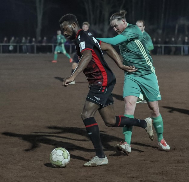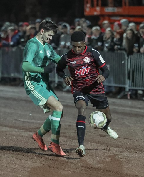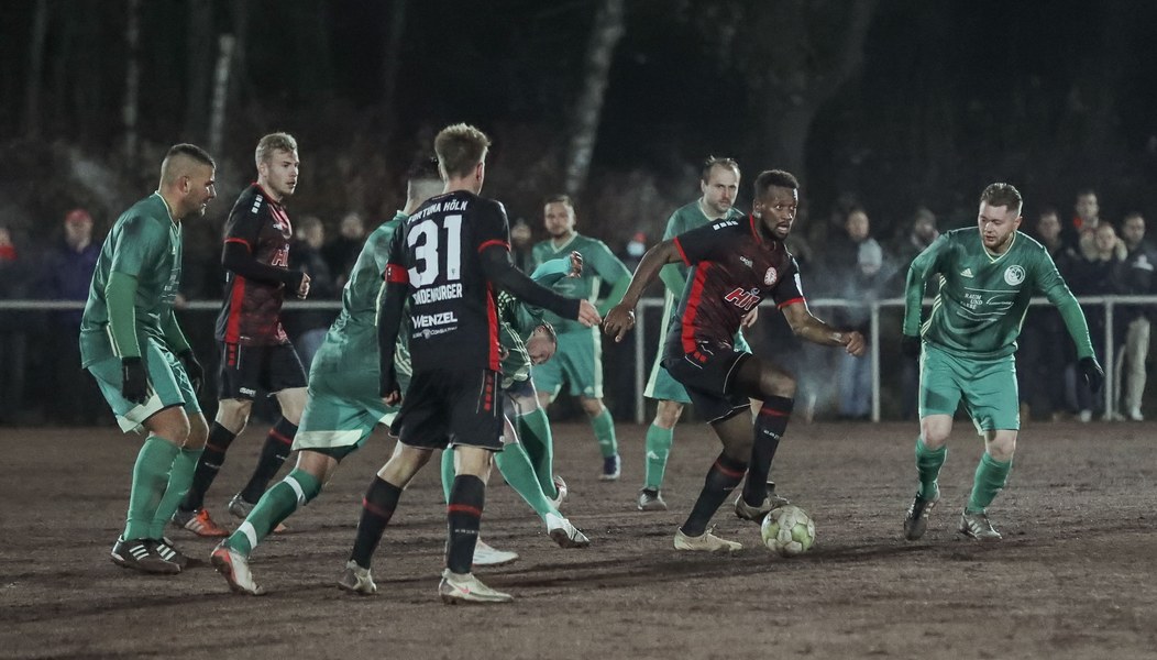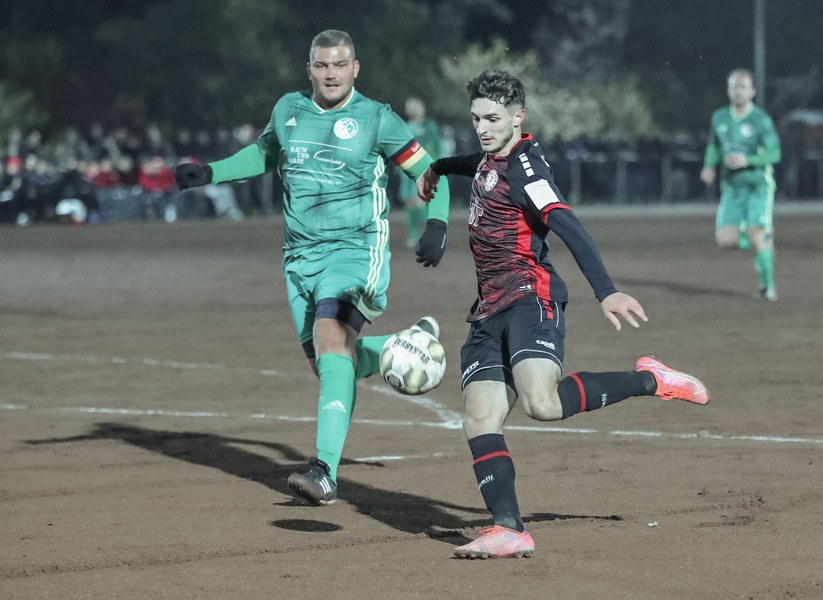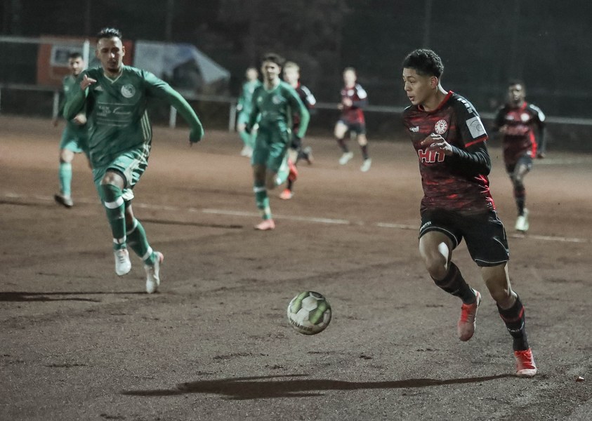 Über das Zentrum wurde der Ball auf Batuhan Özden gespielt, der über links in die Tiefe gestartet war. Sein Abschluss landete jedoch deutlich neben dem Tor (7.Min). Kurz drauf kam es zu einer großen Chance für unsere Fortuna. Über die rechte Seite brach Pascal Itter bis an die Grundlinie durch und sah den einlaufenden Imbongo im Fünfer. Auf Brusthöhe versuchte Dimitry Imbongo den Ball zu verwerten wurde jedoch entscheidend gestört und köpfte den Ball über das Tor (9.Min). Nach einer knapp 15-minütigen Spielunterbrechung, aufgrund einer Verletzung des Schiedsrichters Kim Marcel Schwarzschultz, machten unseren Jungs dort weiter, wo sie vor der Unterbrechung aufgehört hatten. Itter gelang es abermals über die rechte Seite durchzudringen und den Ball in den Strafraum abzulegen. Demajs nachfolgender Schuss ins rechte Eck parierte Keeper Boden zur Seite. Der Ball ging jedoch nicht über die Torauslinie, sondern wurde von einem Weiler-Volkhovener im Spiel gehalten (24.Min). Auch im weiteren Spielverlauf waren eine Menge Chancen für die Fortuna da, doch der Ball wollte noch nicht über die Torlinie. Kurz vor der Halbzeit setzten die Fortunen das lang ersehnte Zeichen. Leon Demaj fasste sich sein Herz und zog aus gut 20 Metern ab. Der Ball prallte vom Weiler-Volkhovener Spieler Markus Wilberg ab und landete im Tor der Gastgeber. Damit brachte er unsere Fortuna verdient in Führung (37.Min).