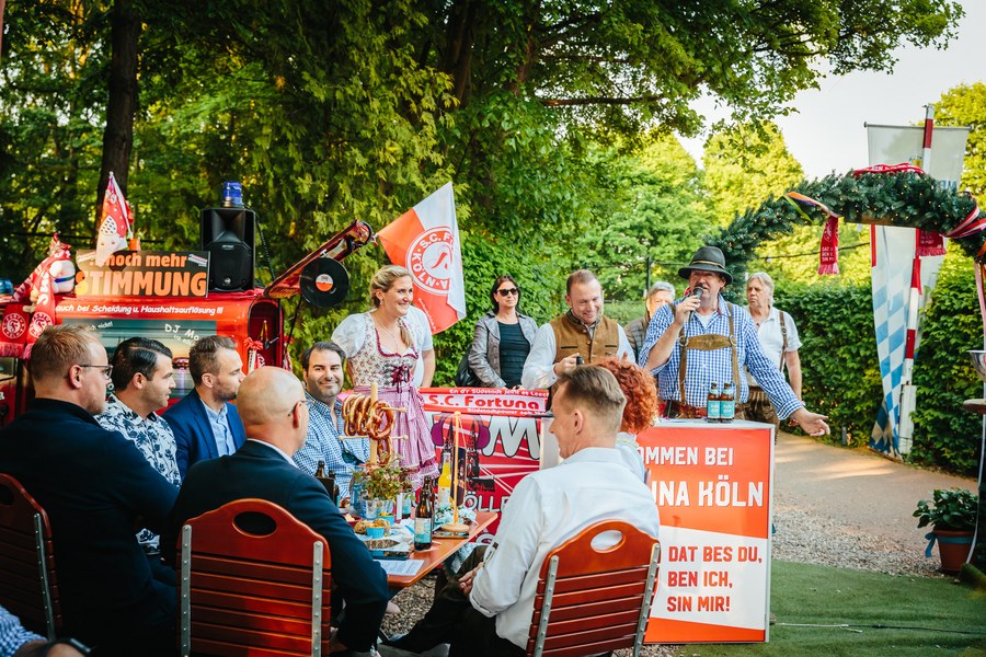 Oktoberfestfeeling Mitten im Jahr – Die Fortuna machte es möglich! Nicht nur das alpenländische Ambiente und der traditionelle Kleidungsstil der geladenen Gäste waren der Grund für die festliche Stimmung. Auch kulinarisch gab es einiges zu bieten. Ein ganzes Spanferkel vom Holzkohlegrill namens „Lisa“ war das Highlight der typisch bayrischen Traditionsküche. Die passenden Stadionwürste von Remagen durften natürlich auch nicht fehlen. Nach dem Essen sorgte ein DJ für Schunkelstimmung unter den Gästen. Eine ausgelassene Atmosphäre zog sich wie ein roter Faden durch den gesamten Abend. Wir sind und sicher, dass dies nicht der letzte Abend dieser Art gewesen sein darf.