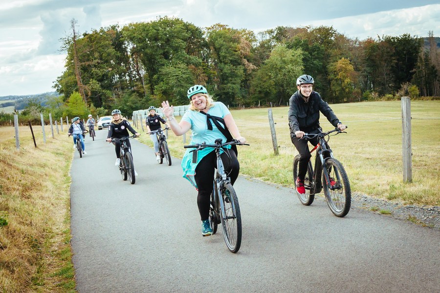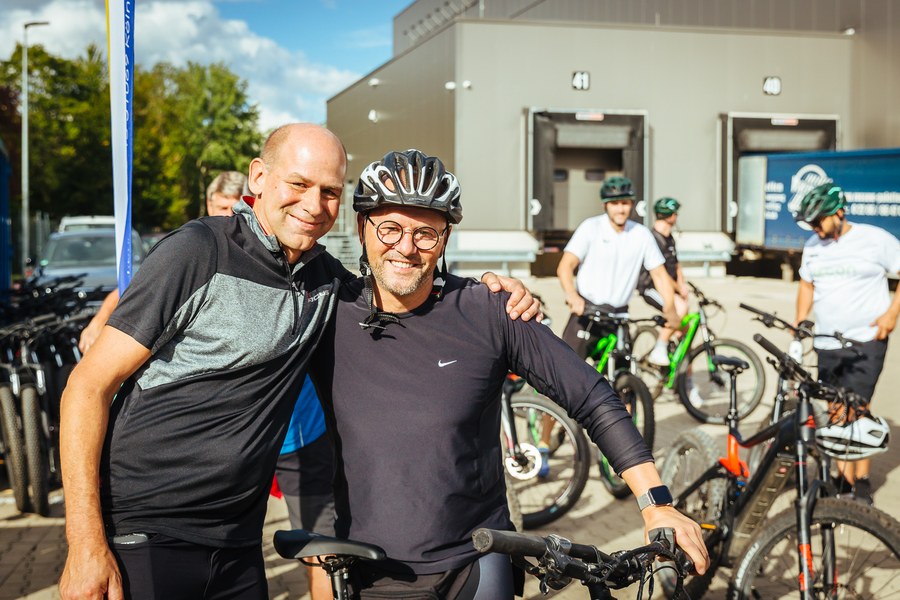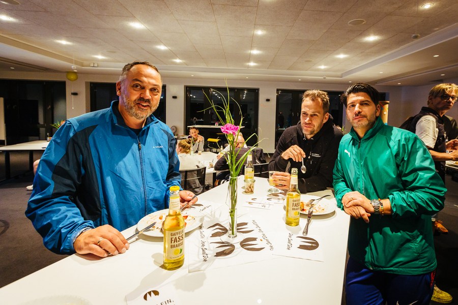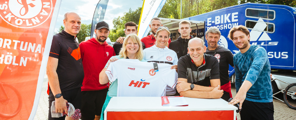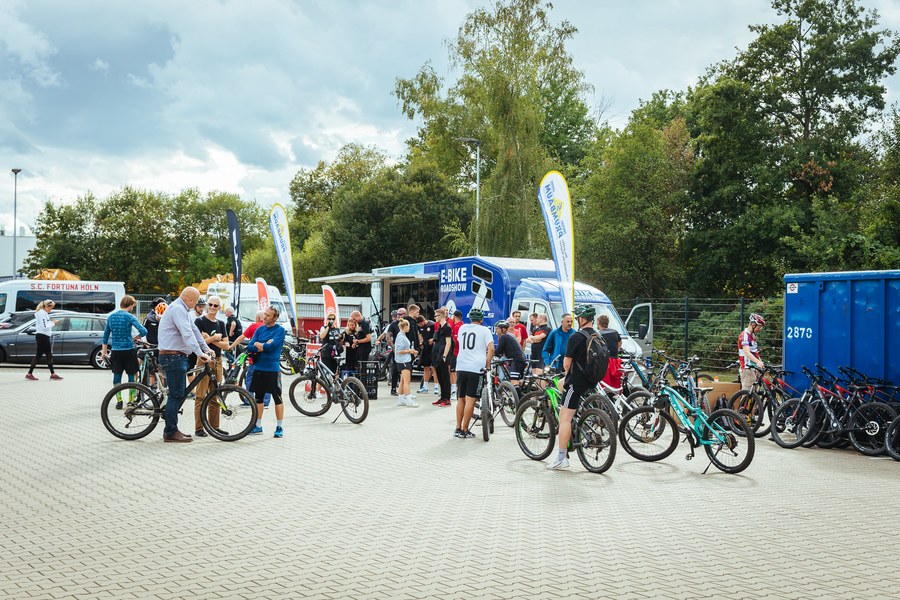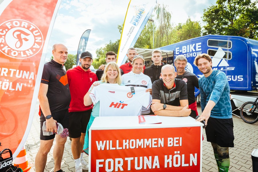 Das alljährliche E-Bike-Event stand am vergangenen Donnerstagnachmittag im Terminkalender der 30 geladenen Gäste, des Trainer-Teams (Markus von Ahlen und Zlatko Muhovic) sowie der Spieler Dominik Lanius, Maik Kegel und Hannes Kramp. Treffpunkt war um 16:30 Uhr das Soennecken-Gelände in Overath. Nachdem alle E-Bikes individuell eingestellt wurden, begrüßten die diesjährigen Veranstalter Jörg Prumbaum (Geschäftsführer Zweirad-Center Prumbaum), Arnd Iffland (eurorad Deutschland GmbH), Silvia Dworschak (Key-Account-Managerin Soennecken) sowie Anja Grunow seitens der Fortuna die Freunde und Partner des Regionalligisten. Nach der Begrüßungsrunde und der Übergabe einiger mitgebrachter Geschenke ging es zum sportlichen Teil des Events über. Dabei konnten sich die Gäste zwischen einer angenehmen „Genießer-Tour“ oder einer anspruchsvollen „Mountainbike-Tour“ entscheiden. Beide Touren sollten sich zu einer Pause an der neuen Filiale von Zweirad-Center Prumbaum in Overath treffen. Nach der insgesamt zweistündigen Tour erwartete die tapferen Radlerinnen und Radler bei Soennecken ein leckeres BBQ mit Grillwaren von Fortuna-Partner Hardy Remagen, eine Auswahl an Salaten von Soennecken und Brötchen aus dem Hause Schmitz & Nittenwilm. Das kühle Kölsch stammte von der Privatbrauerei Gaffel, das Wasser von der Haaner Felsenquelle. Zum Abschied bekam jeder Teilnehmer noch eine Geschenktüte von Soennecken überreicht.