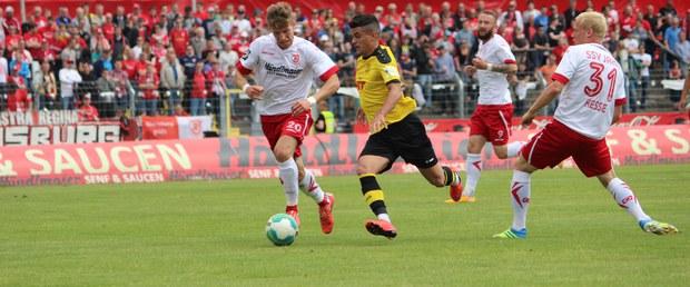 Trainer Heiko Herrlich steht also vor der Herausforderung, den Negativlauf zu stoppen und das Lotte-Spiel schnell aus den Köpfen zu bekommen. Dass der Regensburger Aufstiegstrainer mit Herausforderungen aber umgehen kann, zeigte er zu Saisonbeginn: Damals fielen mit Kapitän Markus Palionis (Außenbandriss), Ali Odabas (Kreuzbandanriss) Thomas Paulus (Muskelfaserriss), Sebastian Nachreiner (Außenbandanriss) und Robin Urban (Rippenbruch) alle etamäßigen Innenverteidiger aus. Herrlich stellte kurzerhand mit Marvin Knoll und Sven Kopp zwei zentrale Mittelfeldspieler ins Abwehrzentrum. Der Plan ging auf: Im Verbund verteidigte Regensburg kompakt und aggressiv. Speziell über die laufstarken Pusch und Grüttner störte man als Verbund früh und machte so die Abwehrarbeit für die beiden gelernten Mittelfeldspieler leicht. Die können so ihre Stärke einbringen - das Aufbauspiel. Wohl auch deshalb ist Regensburg in der Offensive schwierig auszurechnen und brandgefährlich.