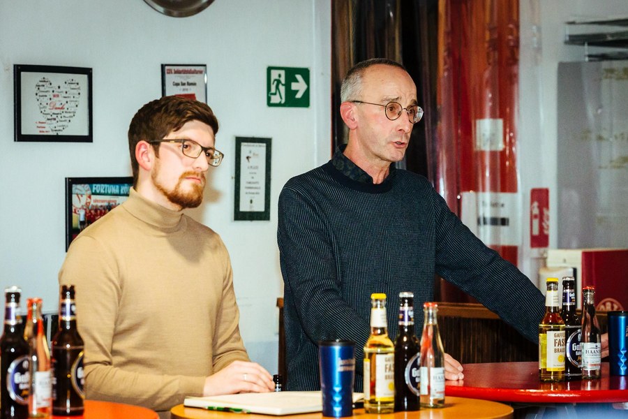 Der Abend startete in geselliger Atmosphäre mit der Fortuna-Hymne, die nicht nur aus den Boxen im Vereinsheim sondern auch aus den Kehlen der anwesenden Fans tönte. Zunächst fand Fortuna-Präsident Hanns-Jörg Westendorf einige einleitende Worte und schilderte die Gedanken um Veränderungen in der Geschäftsführung, die auch sogleich vorgestellt wurde. Jürgen Drolshagen und Robert Pöppinghaus stellten sich den Fortuna-Fans noch einmal genauer vor, wenngleich sie als Vorstandsmitgliedern den meisten Fans auch schon bekannt waren.