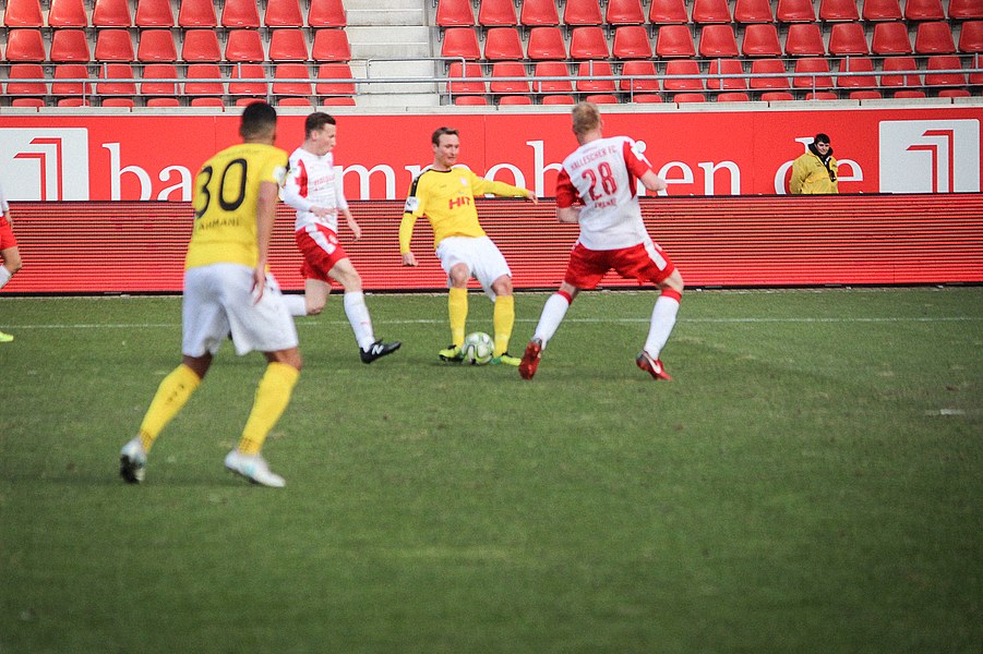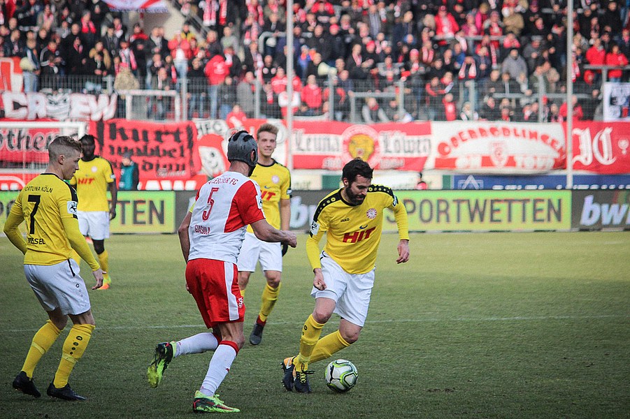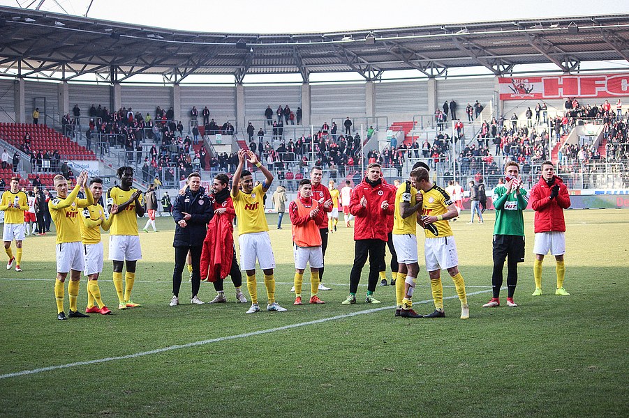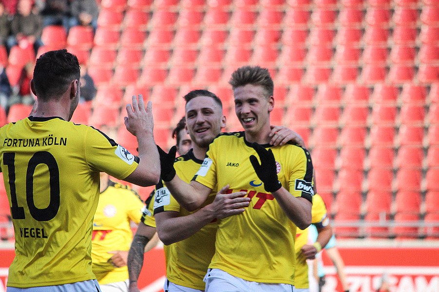 In der 2. Halbzeit erwischte die Fortuna ebenfalls einen guten Start, zeigte sich dieses Mal aber kaltschnäuziger. Nach einem Kegel-Freistoß konnte sich Brandenburger den Abpraller sichern und schob humorlos zum 2:0 ein (56.). Das schnelle 2:0 der Kölner zog dem Erdgas-Sportpark den Stecker, auch wenn die Fortuna danach Glück: Baumgärtel wurde nach einem Eckball alleine gelassen. Der Hallenser verzog allerdings und sein Schuss ging knapp am Pfosten vorbei (63.). Auch danach drückte der HFC auf den Anschlusstreffer. Boss warf sich mit vollen Risiko in eine Fetsch-Hereingabe (66.). Die Fortuna ließ sich nicht beeinducken und suchte die Entscheidung. Nach einem Brandenburger-Zuspiel verpasste Dahmani den Abschluss und die Hallenser konnten die Situation klären (74.). Kurz darauf entschieden die Südstädter aber die Partie! Nach einem Konter marschierte Menz mit nach vorne und schob nach Zuspiel von Keita-Ruel einskalt zum 3:0 ein (76.) Der HFC probierten zwar noch den Ehrentreffer zu erzielen, aber die Defensive der Fortuna stand sicher. Schließlich hatte die Fortuna noch die Chance auf ein weiteres Tor, aber Dahmani konnte den Ball nicht an Schnitzler vorbei bringen (89.). Am Ende feierten die Kölner den ersten Auswärtssieg seit September letzten Jahres und rückt ganz dicht an die Aufstiegsplätze heran.