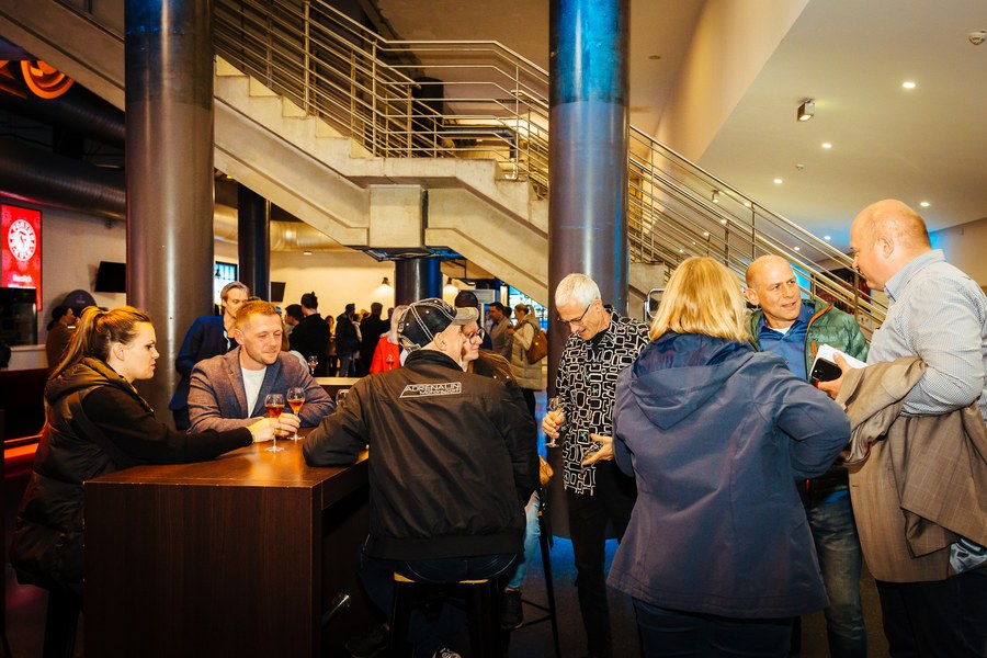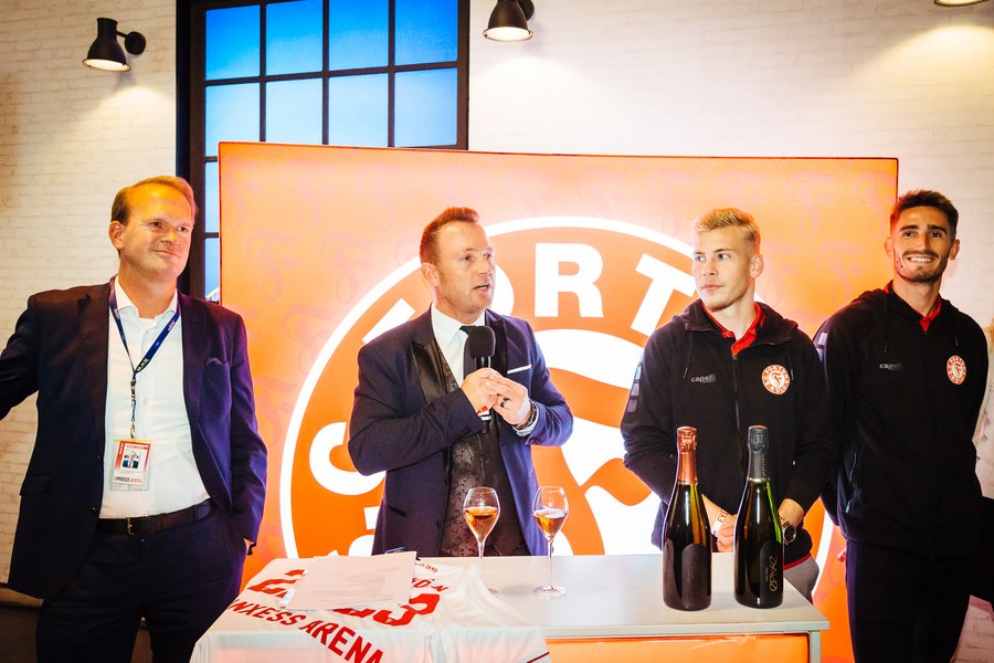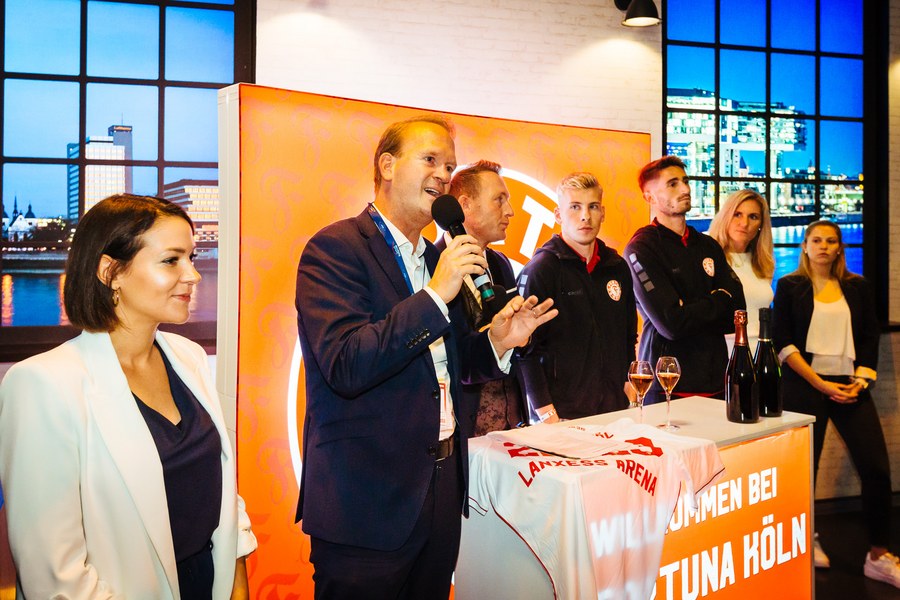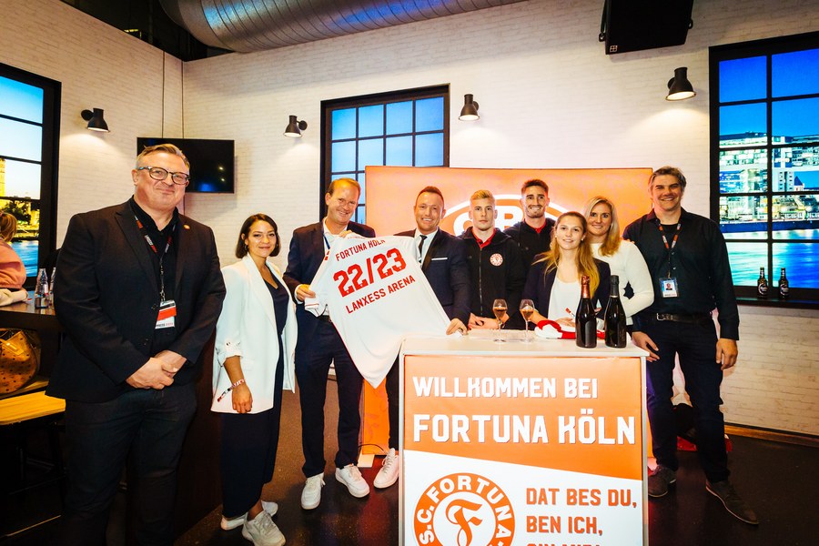 Das neuartige Event in einer der größten Eventarenen Europas startete um 18 Uhr bei einer netten Zusammenkunft in einem für die Fortuna eigens hergerichteten Businessbereich, zu dem alle Teilnehmer exklusiven Zugang erhielten, noch bevor die Arena offiziell öffnete. In dem separaten VIP-Bereich wurden die Gäste bei einem Champagnerempfang begrüßt und starteten genüsslich dank en vie Champagne in den Abend. Der Raum füllte sich ziemlich schnell mit 200 Partnern der Fortuna, die zunächst in einer Eröffnungsrede von Stefan Löcher, dem Geschäftsführer der LANXESS arena, und Fortuna-Geschäftsführer Benjamin Bruns willkommen geheißen wurden. In einer interessanten Ansprache berichtete Löcher über die Anfänge bis hin zur aktuellen Lage der Eventarena und teilte dabei auch einige unterhaltsame Anekdoten, welche er im Laufe der Jahre bei verschiedensten Veranstaltungen erlebte. Nachdem die Gastgeber ihre beidseitige Freude über die neue Partnerschaft bekundeten, eröffnete Fortuna-Spieler Timo Hölscher anschließend das Buffet.