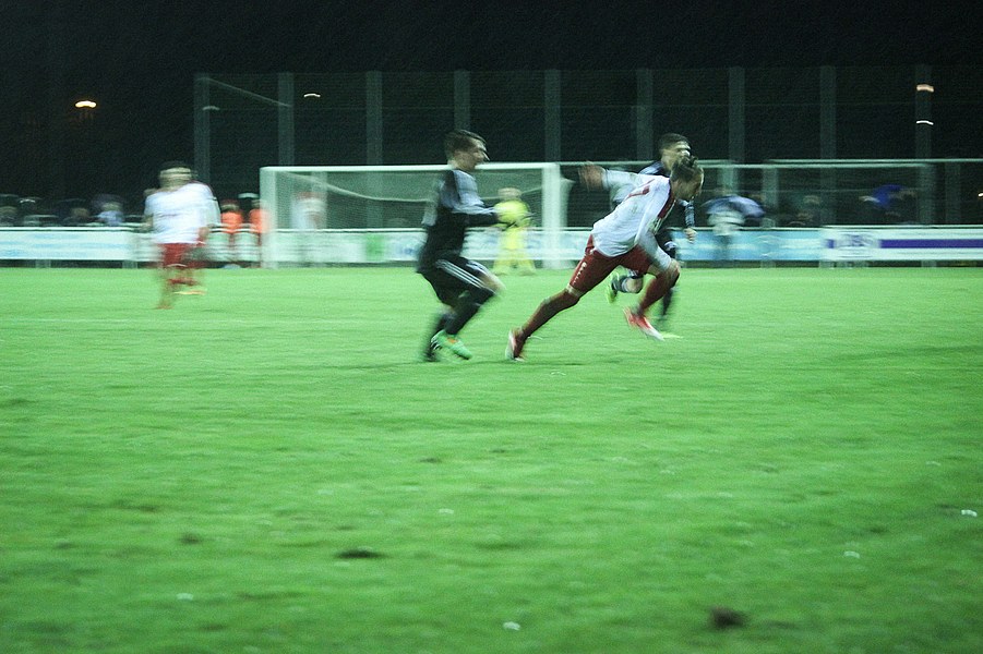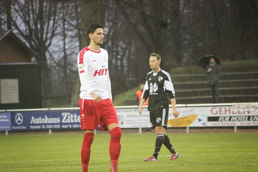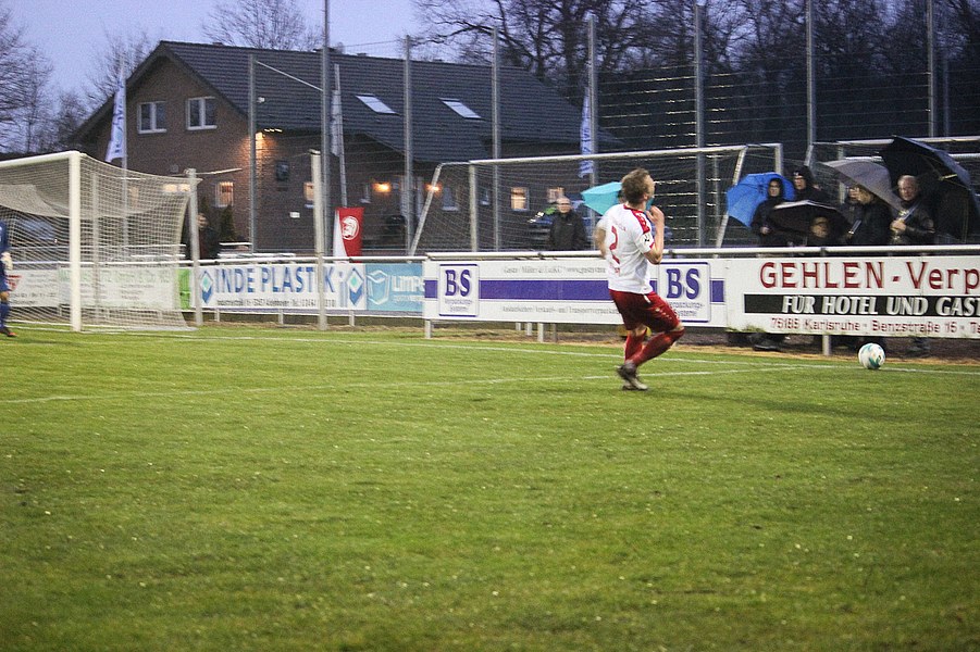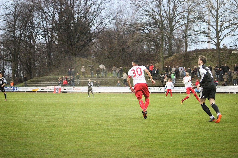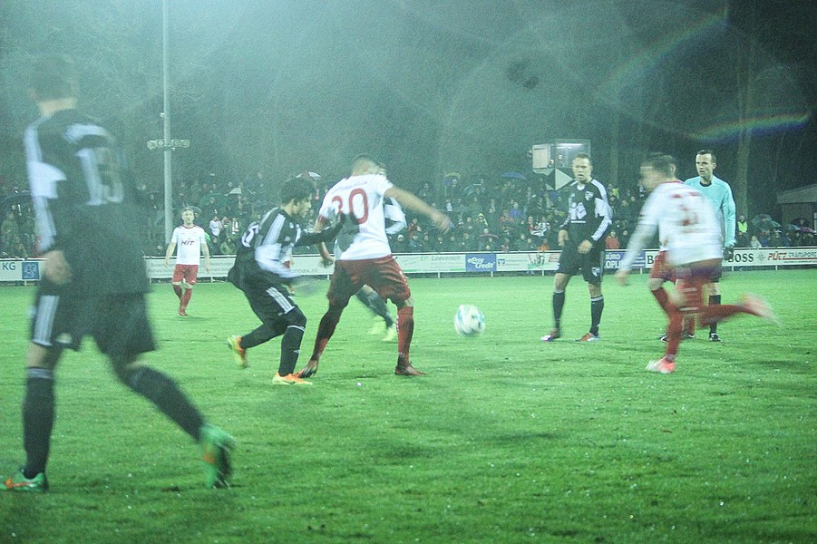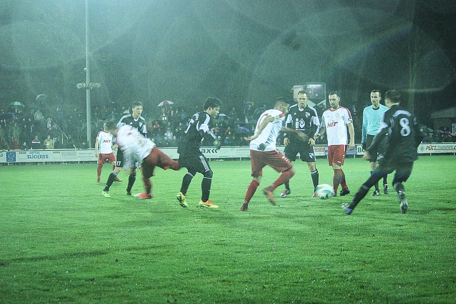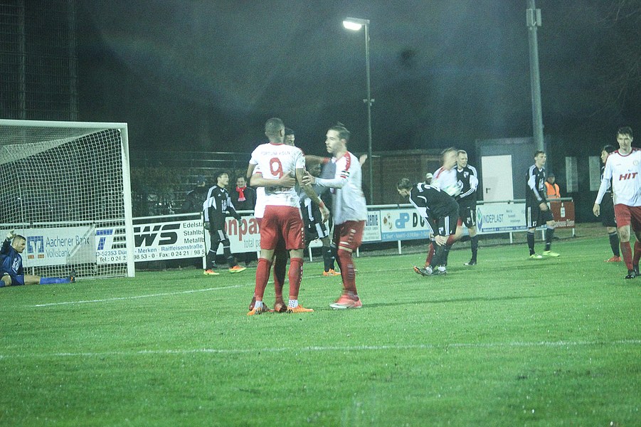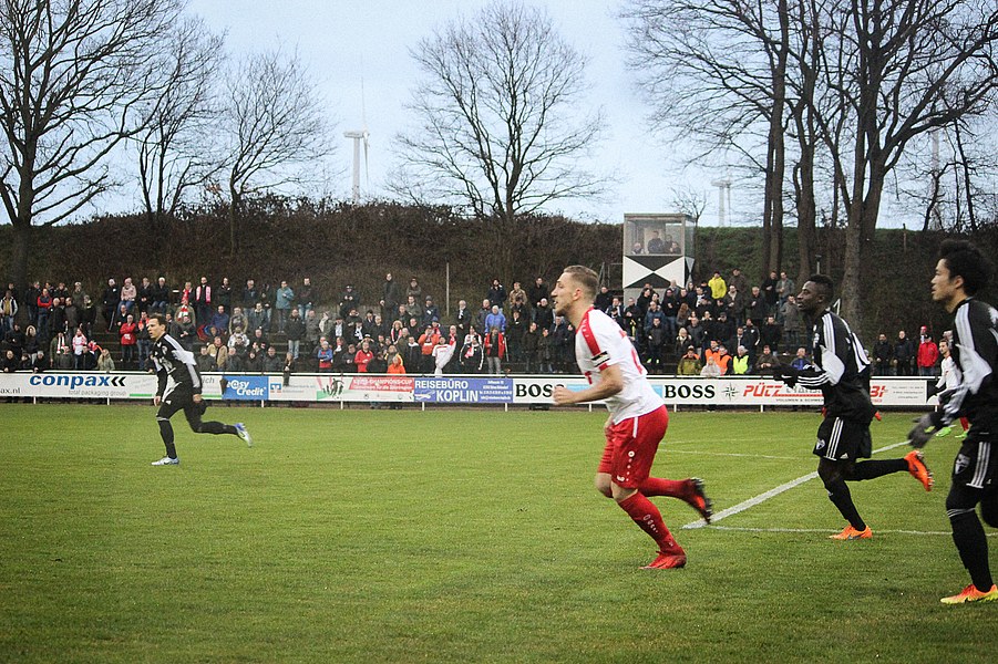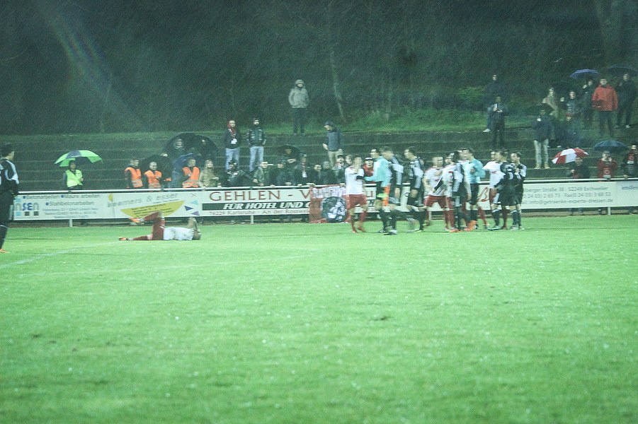 Für Borussia Freialdenhoven war es das absolute Highlightspiel, was man auch merkte. Die Hausherren liefen in der Anfangsphase früh an und lauerten auf Fehler der Kölner. Der Plan von Freialdenhoven ging dabei früh auf: Nico Brandenburger foulte Daescu im Strafraum, es gab Elfmeter. Simon verwandelte den Strafstoß mit Gewalt sicher in der Mitte (8.). Die Fortuna hatte am frühen Gegentreffer durchaus zu knabbern: Simon setzte sich gegen seine Gegenspieler durch. Sein Distanzschuss ging jedoch am Tor vorbei (16.). Erst Mitte der ersten Halbzeit kamen die Kölner besser in die Partie. Farrona Pulido zog aus 25 Metern ab und Werres im Tor von Freialdenhoven musste sich ganz lang machen (19.). Die beste Phase hatten die Gäste 20 Minuten vor Pausenpfiff. Als erstes wurde Kegels Schuss kurz vor der Linie abgeblockt (32.). Die nächste Riesenchance ließ danach nicht lange auf sich warten: Brandenburger zog aus der Distanz ab und traf die Latte, der Nachschuss von Scheu ging knapp am Tor vorbei (35.). Die Fortuna konnte vor der Pause nur noch einmal durch einen Freistoß von Kegel gefährlich werden, der knapp am Tor vrobei ging (44.). So ging es mit einer letztlich glücklichen Führung für Borussia Freialdenhoven in die Pause.