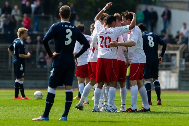 Das Kölner Derby zwischen der Fortuna und der U21 des 1.FC Köln endete 1:1 (1:0). Die Fortuna, die mit Steffen Moritz in vorderster Front startete, begann druckvoll und engagiert. Schon nach elf Minuten musste die Fortuna eigentlich in Führung gehen. Christian Pospischil und Silvio Pagano vernaschten mit schönem Direktspiel die gesamte FC-Defensive, doch Hamdi Dahmani schoss den Ball völlig freistehend in die Arme von FC-Torhüter Daniel Schwabke. Besser machte dies dann Steffen Moritz sieben Minuten vor dem Halbzeitpfiff. In einer ähnlichen Situation behielt er die Nerven und traf zur verdienten 1:0-Führung (38.). Direkt nach dem Pausentee dann die "Kalte Dusche" für die Fortuna: Kacper Przybylko nutzte einen Fehler der Fortuna-Defensive und schob unter Dieter Paucken durch zum 1:1 ins Fortuna-Tor (47.). Dabei blieb es bis zum Schlusspfiff.