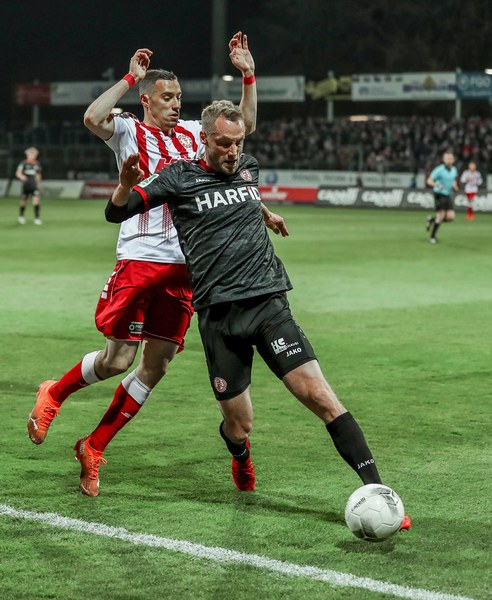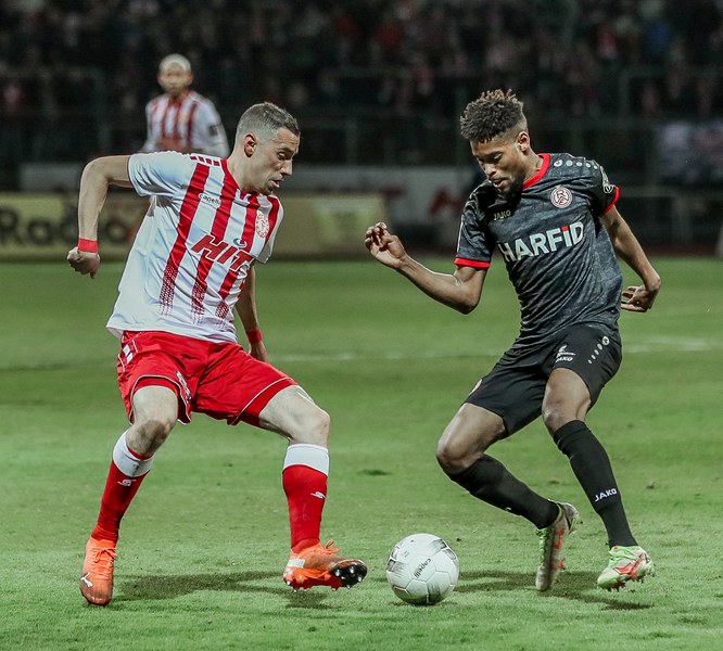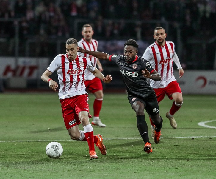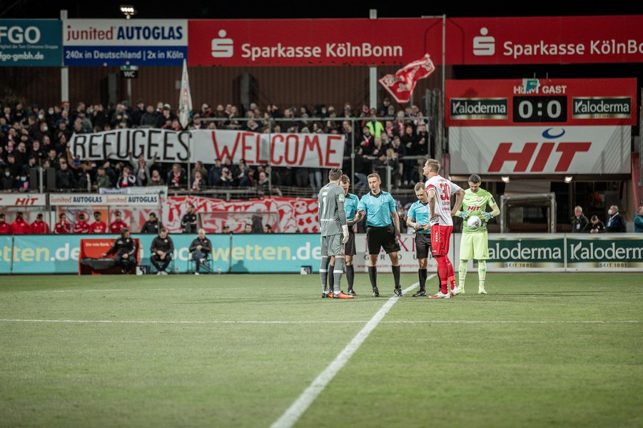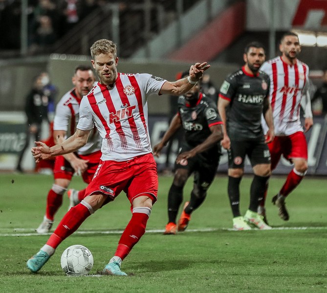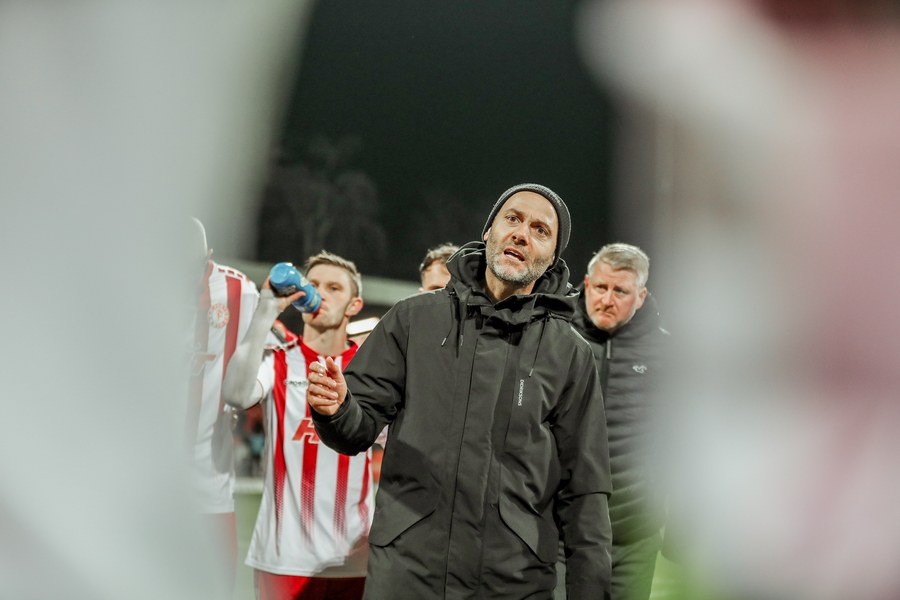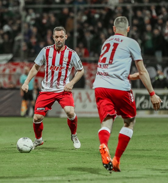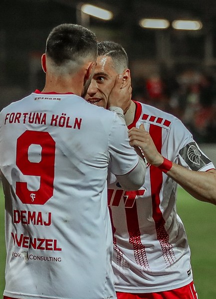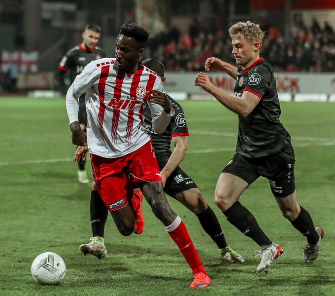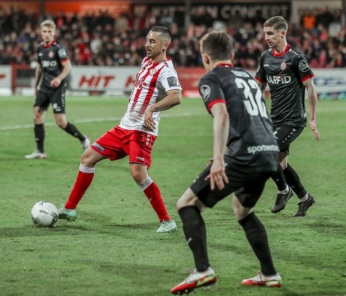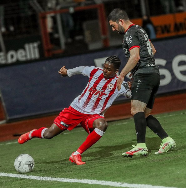 Der erste Treffer der Gäste, die mit viel Wucht vor das Tor von Fortuna-Schlussmann André Weis kamen, zeichnete sich schon frühzeitig ab. Über Isiah Young gelangten die Essener bereits nach sieben Minuten durchaus lukrativ vor den Fortuna-Kasten, doch André Weis war hellwach und parierte. In der 13. Minute ertönte der erste Jubelschrei der RWE-Anhänger an diesem Abend. Kefkir brachte einen Einwurf im Sechzehner an Engelmann, der aus gut 15 Metern verdeckt zum Schuss kam und Weis keine Chance ließ. Der frühe Gegentreffer vermachte den Eindruck, dass die Fortuna nun wacher war und sich mehr nach vorn zutraute. So war es Najar, der zunächst mehrere Gegenspieler aussteigen ließ und in einer der nächsten Aktionen nur noch durch ein elfmeterwürdiges Foul von Young gestoppt werden konnte. Sascha Marquet trat zum fälligen Strafstoß an und verwandelte diesen sicher (26.Min). Die Fortunen waren zurück im Spiel und hatten die Führung egalisiert. Alles stand wieder auf null und die Freude bei den Anhängern aus der Südstadt war riesig, aber hielt nicht lange. Quasi im Gegenzug nutze Isiah Young einen Stellungsfehler und schob zum erneuten Führungstreffer für die Essener ein (28.Min). Die Jungs von Alexander Ende versuchten viel, doch in der ersten Hälfte fehlte das Glück im Abschluss. RWE gelang es einen Gang hochzuschalten und dem Spiel ihren Stempel aufzudrücken, schaffte es aber nicht den starken Keeper André Weis erneut zu bezwingen. Damit ging es mit einem knappen Rückstand in die Pause in der Alexander Ende einmal wechselte. Der gelb vorbelastete Mittelfeldstratege Maik Kegel verließ den Platz und wurde durch Offensivmann Mike Owusu ersetzt. Die Südstädter kamen mit deutlich mehr Schwung aus der Kabine und hatten durch Batarilo (50.Min.) und Owusu (63.Min) gute Chancen auf den Ausgleichstreffer. Diesen erzielte Suheyel Najar nach einem traumhaften Freistoß ins rechte Eck (74.Min). Es ertönte das zweite Mal an diesem Abend die Tormusik und die Fortuna-Anhänger waren von dem erneuten Comeback gegen den Spitzenreiter begeistert. Den Gästen merkte man den unbedingten Willen dieses Spiel zu gewinnen an, weshalb sie weiter Druck auf das Fortuna-Tor ausübten. Schlussmann Weis parierte erneut glänzend. Doch beim Schuss vom eingewechselten Kleinsorge war er erneut machtlos (83.Min). DieFortunen gaben aber bekanntlich niemals auf und erzielten durch Dominik Lanius nur eine Minute nach dem Gegentreffer den 3:3 Endstand. Nach wahnsinnigen 90 Minuten, die für jeden neutralen Fußballfan ein Genuss waren, trennten sich die beiden Teams mit einem 3:3 Unentschieden. Vorallem die Mentalität dieser Truppe, drei Mal zurückzuliegen und anschließend wiederzukommen, verdient Riesenrespekt. So können wir es kaum erwarten diesem Team schon am kommenden Samstag erneut im Südstadion zuzuschauen und freuen uns auf mehr!