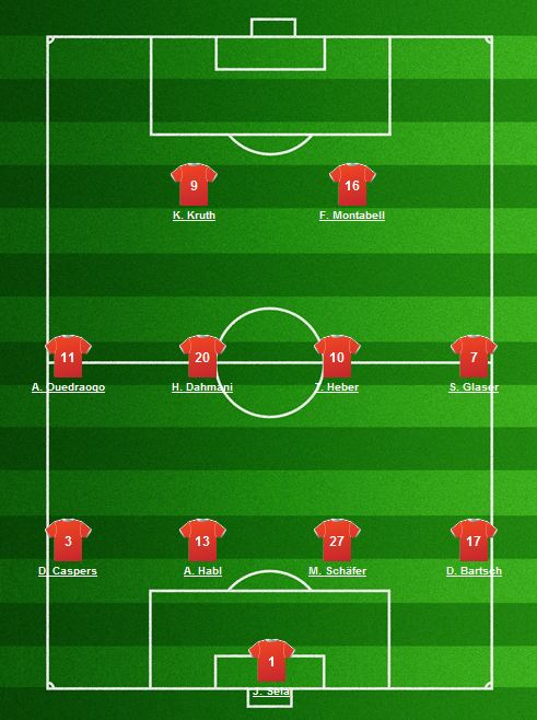 Die Mitglieder von deinfussballclub.de würden heute abend mit zwei Stürmern gegen den SSV Merten antreten. In der Viererabwehrkette würden aber genau die Spieler starten, die das auch gegen den VfB Speldorf getan haben. Mit welcher Mannschaft Matthias Mink in dieses wichtige Pokalspiel startet, erfahrt Ihr ab 19:45 Uhr bei DFC-Live und im Liveticker.