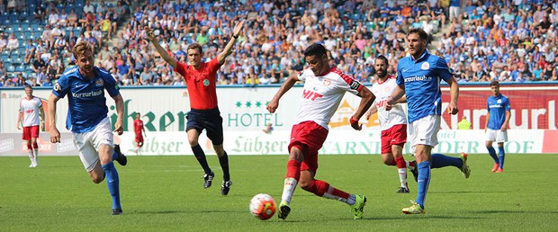 Zwölf Gegentore, das ist der zweitbeste Wert in der Liga, der nur von Wehen Wiesbaden getoppt wird. Eben dieses Wehen Wiesbaden konnten die Rostocker am letzten Spieltag mit 1:0 bezwingen und das trotz Unterzahl! Nur im Spiel gegen den KSC fingen sich die Rostocker mehr als zwei Gegentore. In neun Spielen blieben die Spieler von Pavel Dotchev sogar ganz ohne Gegentor. Großen Anteil daran hat das Innenverteidiger Duo Hüsing und Riedel. Beide wurden erst im Sommer verpflichtet und sorgten sofort für die nötige Sicherheit vor Torhüter Janis Blaswich. Während Hüsing die Lufthoheit für sich beansprucht hat, fällt Riedel durch sein starkes Stellungsspiel auf. Riedel ist dabei für Trainer Dotchev, der ebenfalls vor der Saison neu kam, kein Unbekannter: Gemeinsam stellte man bei Erzgebirge Aue vor zwei Jahren schon eine starke Defensive und stieg in die 2. Bundesliga auf.