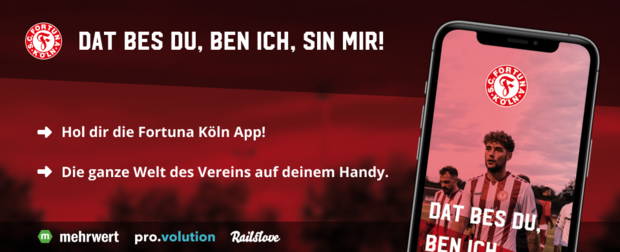 Geschäftsführer Benjamin Bruns freut sich über die neue App: »Gemeinsam mit Railslove, pro.volution und mehrwert haben wir eine Möglichkeit gefunden unseren Fans alle News rund um die Fortuna näher zu bringen. Mit der App wollen wir den Fans der Fortuna noch näher kommen und alle immer auf dem neuesten Stand halten – das macht die Fortuna Köln zu wahren Digitalisierungsmeistern des Fußballs.«