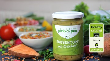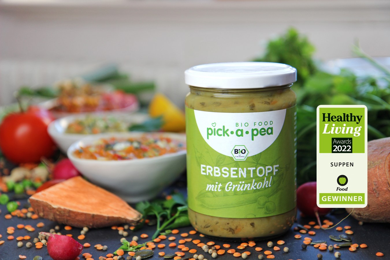 Das Kölner Bio-Unternehmen pick-a-pea BIO FOOD hat ganz aktuell mit der „Erbsensuppe mit Grünkohl“ den „Healthy Living Award 2022“ gewonnen. Für Gründerin Kathrin Möntenich ist es bereits das vierte Produkt, das diese Ehrung erhält. Das Ernährungsmagazin „Foodforum“ und das Laufsport-Magazin „Running“ zeichnen jährlich wegweisende Produkte für einen gesunden Lebensstil aus. Die 16-köpfige Fachjury aus Ernährungswissenschaftler:innen, Spitzenköch:innen, Sportler:innen und Fachärzt:innen vergibt diese Auszeichnung.