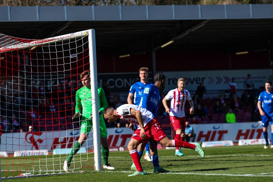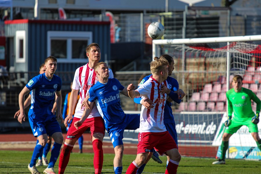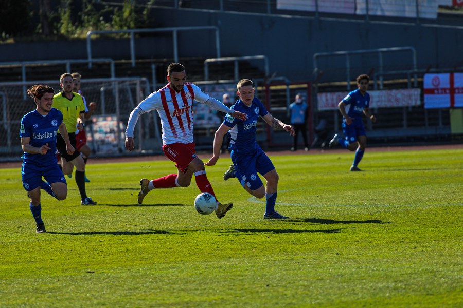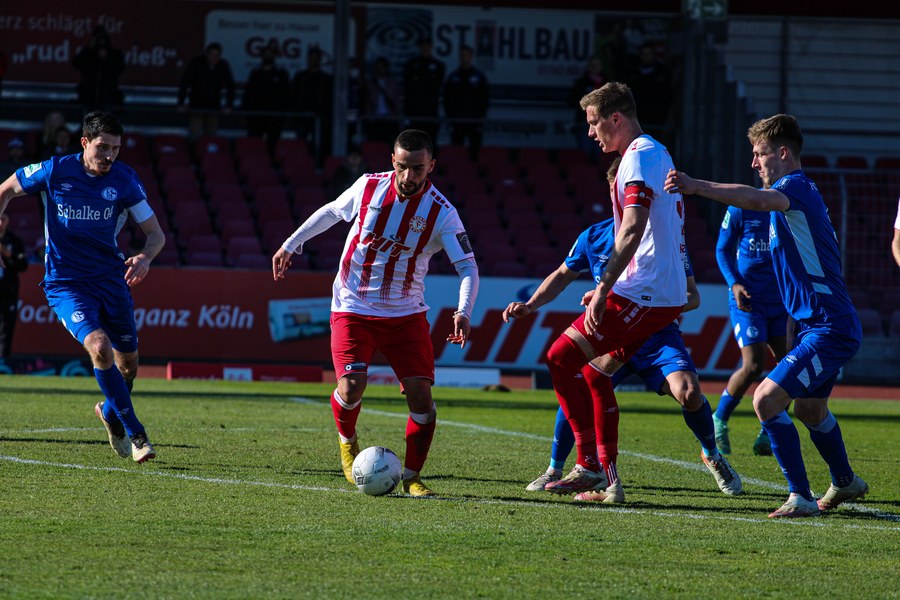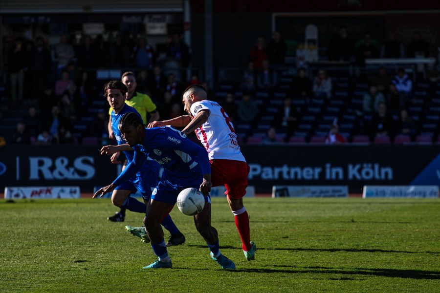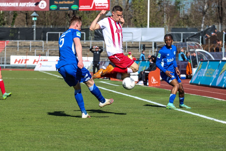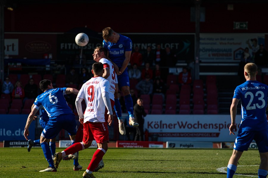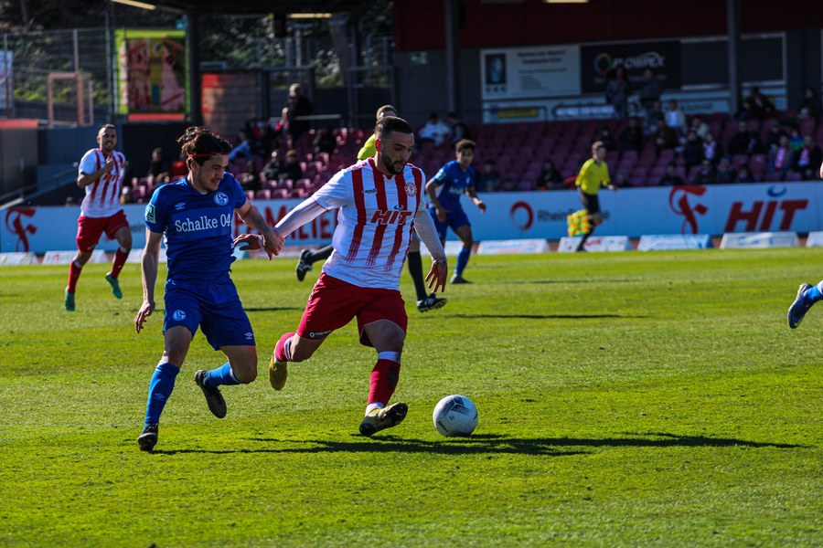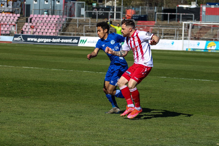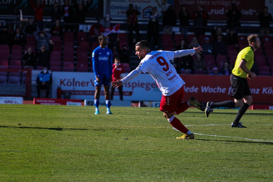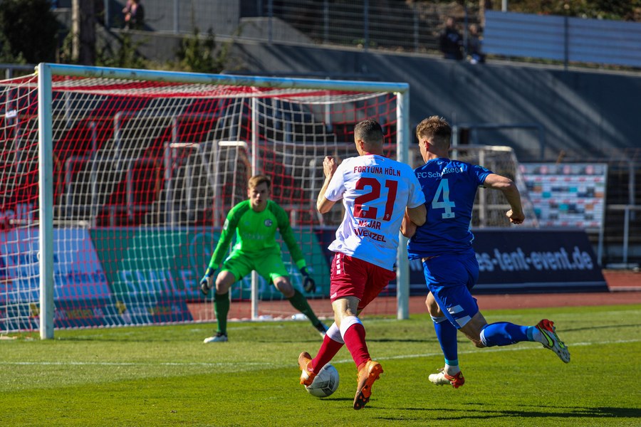 Mit gleich drei Wechseln ging es für die Fortuna in die zweite Halbzeit. In der Kabine blieben Dominik Lanius, Maik Kegel und Mike Owusu. Für die drei Jungs kamen Leon Demaj, Dimitry Imbongo und Jan-Luca Rumpf auf den Platz. Dieser wurde nach langer Verletzung erstmals wieder eingewechselt. Die Fortuna kam gestärkt aus der Kabine zurück und versuchte es gleich mehrfach aufs Tor. Schlussmann Felix Wienand war aufmerksam und ließ keinen Ball an sich vorbei. Im weiteren Spielverlauf kam es in den Kölner Reihen auch weiterhin zu Ungenauigkeiten, die die Knappen nutzten und sich durch den zweiten Treffer von Leonardo Scienza weiter absetzten (61. Min). Doch die Fortuna ließ sich durch den Rückstand nicht unterkriegen und gab bereits zwei Minuten später eine Antwort. Nach dem Anstoß drangen die Südstädter direkt in den Strafraum vor, in welchem sich Leon Demaj dem Ball annahm und diesen zum 1:2 ins Tor schob (63.Min). Damit war die Fortuna zurück im Spiel und legte in der 69. Minute nochmals nach. Zunächst schoss Batarilo aufs Tor, dessen Schuss jedoch abgeblockt wurde. Imbongo reagierte blitzschnell und versenkte den Ball im Tor. Die Freude war im ganzen Stadion riesig. Schiedsrichter Lars Bramkamp pfiff allerdings Abseits. Nach dem Rückschlag blieb die Fortuna weiterhin dran und gab alles, um den Ausgleich zu erzielen. Kurz vor Schluss gelang es Leon Demaj mit einem sehenswerten Schuss in den Winkel, den Ausgleich zu markieren (86. Min). In den letzten Spielminuten legte die Fortuna nochmals alles nach vorn, kam aber nicht über das 2:2 Unentschieden hinaus.