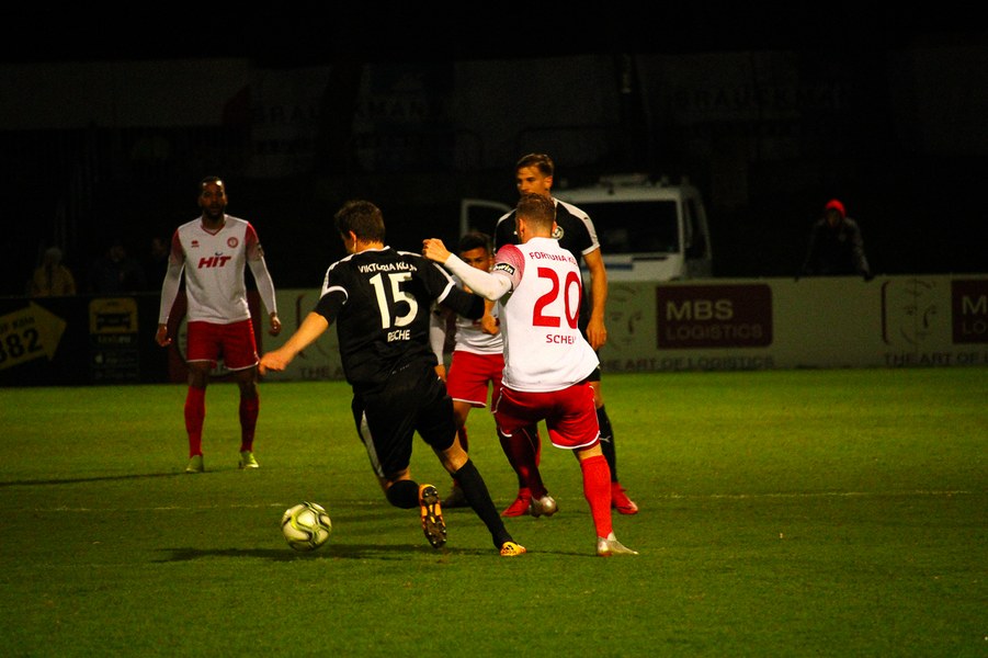 In der zweiten Hälfte agierte Fortuna zunächst recht dominant. Gefährliche Tormöglichkeiten sprangen dabei aber erst einmal nicht heraus. Von den Gastgebern war in dieser Phase kaum etwas zu sehen. In der 62. Minute dann ein richtig guter Konter der Gäste: Nach Befreiungsschlag von Bernard Kyere steuerte Dahmani geradewegs auf den Kasten der Viktoria zu. In letzter Sekunde war dann aber doch noch ein Abwehrbein dazwischen und vereitelte die Torgelegenheit.