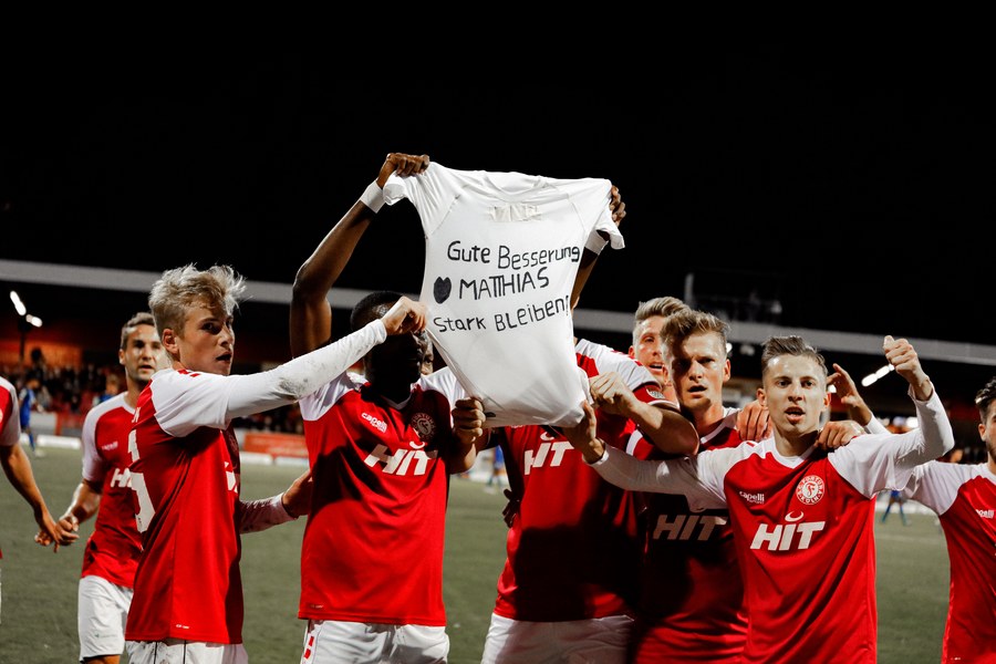 Die zweite Halbzeit startete gleich mit einer guten Chance für die Fortuna, doch Salmans Schuss landete knapp über dem Querbalken (46.). In der 49. versuchten die Fortunen Prokoph zu schicken, David Winke passte allerdings auf und klärte den Angriff mit einer Grätsche. Kurz darauf tauchte Francis Ubabuike halb links vor dem Tor auf, den versprungenen Ball beförderte er aber links am Tor vorbei (50.). In der Folge kamen die Südstädter zu gleich mehreren gefährlichen Szenen, brachten den Ball aber nicht im Kasten unter. Eine davon erzwang Hamza Salman mit vollem Körpereinsatz. Hupe schoss Salman beim Klärungsversuch an. Der Ball prallte zu Prokoph ab, welcher kurz vor der Strafraumgrenze nur noch mit einem rüden Foul durch Samoura gestoppt werden konnte. Der daraus resultierende Freistoß landete aber in der Mauer. Mit einem sehenswerten Tanz ließ Günther-Schmidt im Sechzehner gleich mehrere Gegner aussteigen, brachte den Ball aber nicht im Tor unter (57.). In der 62. Minute war es dann endlich soweit und den Fortunen gelang der so wichtige dritte Treffer. Brandenburger drehte sich auf Höhe der Mittellinie gekonnt auf und beförderte den Ball in Richtung Sechzehner. Dort schnappte sich Salman die Kugel und schloss trocken ins lange Eck ab. Nach 74. Minuten war der Arbeitstag für Roman Prokoph beendet. Er machte Platz für den jungen Batuhan Özden, der so noch einige Spielminuten sammelte. Fortuna drückt nun auf die Entscheidung. Auf der rechten Seite setzte sich Günther-Schmidt gegen den Bonner Gegenspieler durch und legte auf Höhe der Sechzehner Kante quer auf Salman, welcher einen guten Meter über das Tor schoss (76.) Der Doppelwechsel in der 81. Minute mit Brock und Nadjombe für Ubabuike und Brandenburger bedeutete die ersten Pflichtspielminuten für Dennis Brock, der nach langer Verletzungspause das erste Mal wieder im Kader war. Zwei Minuten vor Ende der Partie war es Timo Hölscher der einen Pass von Keeper Hupe abfing und damit die endgültige Entscheidung einleitete. Er steuerte in Richtung Torauslinie und legte den Ball quer auf Günther-Schmidt, der nach einer Körpertäuschung zum 4:1 einschoss (88.Minute). Kurz vor Schluss durfte auch Su Najar sein Comeback feiern und ersetzte den Last-Minute Vorbereiter Timo Hölscher. Dann pfiff Schiedsrichter Koj pünktlich ab und die 500 Fans feierten mit den Fortunen den Sieg. Mit einem Banner für Betreuer Mattes ging das gesamte Team auf die Fans zu und schenkten ihm den Sieg.