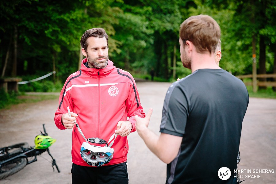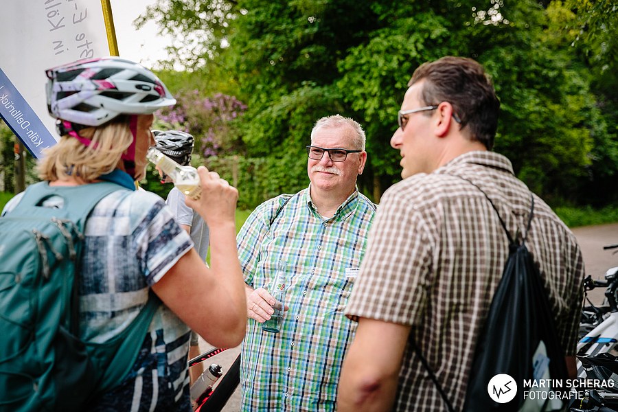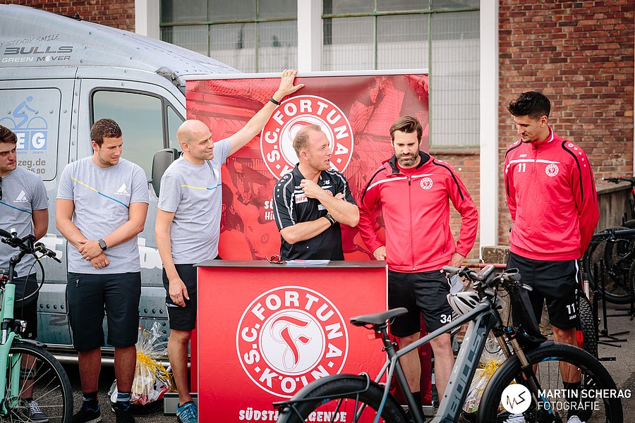 Das Partner-Event der Fortuna war wieder gut besucht: Die insgesamt 38 Personen der 30 teilnehmenden Partnerunternehmen wurden durch die Fahrräder und Materialien des Zweirad-Center Prumbaum und der eurorad Deutschland GmbH in Köln-Dellbrück bestens für die anstehenden Routen ausgestattet. Der sportliche Nachmittag begann um 17:30 Uhr indem Benjamin Bruns, Leiter Sponsoring und Vertrieb bei Fortuna Köln, die anwesenden Vertreter der jeweiligen Partnerunternehmen begrüßte. Im Anschluss daran ging es auf den Sattel und die Teilnehmer teilten sich in zwei Gruppen auf. Wer wollte, konnte sich der Gruppe um Andersen und Falahen anschließen und sich der anspruchsvolleren Sport-Tour stellen, die durch hügeliges Terrain verlief. Als Alternative gab es die nicht weniger schöne Genießer-Route, bei der es etwas entspannter zuging. Gegen 20:30 Uhr fanden sich alle Radfahrer wieder auf dem Gelände des Zweirad-Center Prumbaum ein. Erholung gab es in Form von kühlen Getränken und leckerem Grillfleisch. Neben dem Sportlichen stand am Abend dann vor allem der gemeinsame Austausch im Vordergrund, durch den sich das Fortuna-Netzwerk noch enger verflechten konnte. Gegen 23 Uhr klang der Abend dann allmählich aus.