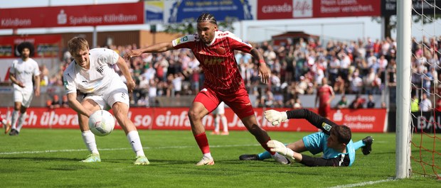 „Ich bin sehr stolz auf die Leistung meiner Mannschaft. Wir hatten uns heute taktisch was anderes überlegt. Das haben wir die ganze Woche einstudiert, das gab uns Sicherheit. Die drei hinten haben das richtig gut gemacht. Wir haben gegen eine spielstarke Kölner Elf sehr gut verteidigt. Wir mussten teilweise leiden. Wir wollten aus Umschaltmomenten unsere Chancen kreieren. Das 1:0 gab uns direkt Selbstvertrauen. Die Brust wurde dann nach vier torlosen Spielen zuvor etwas breiter. Viel haben wir nicht zugelassen, das eine oder andere Mal haben wir ein wenig Glück gehabt. Der Sieg gegen die zweitbeste Heimmannschaft der Liga wertet das Ganze noch ein bisschen auf und wir haben uns im direkten Duell den dritten Platz erkämpft“, sagte Gäste-Trainer Dietmar Hirsch.