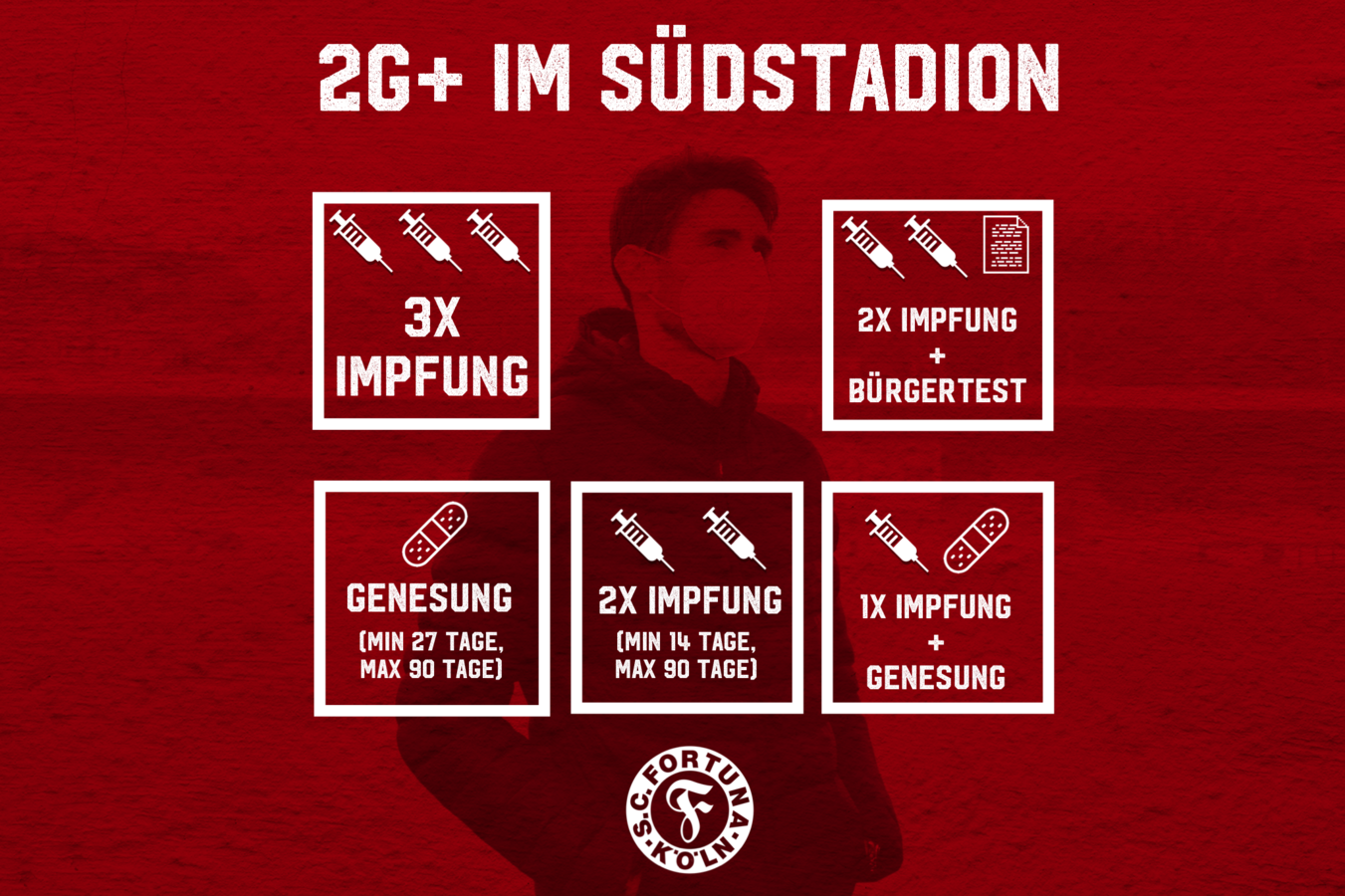 Grundsätzlich gilt für den Besuch des Südstadions die 2G+ Regel. Das bedeutet, dass neben dem Impf- oder Genesenen-Nachweis auch ein negativer Bürgertest (nicht älter als 24h) vorgezeigt werden muss.
