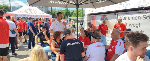 Bei einem Meet-and-greet konnten sich die Fans die neuen Mannschaftsposter beider Regionalliga-Mannschaften sichern und signieren lassen. Bei bestem Wetter, leckerer Remagen-Wurst, Wasser von der Haaner Felsenquelle und Gaffel-Kölsch stand der Tag ganz im Zeichen der Geselligkeit.