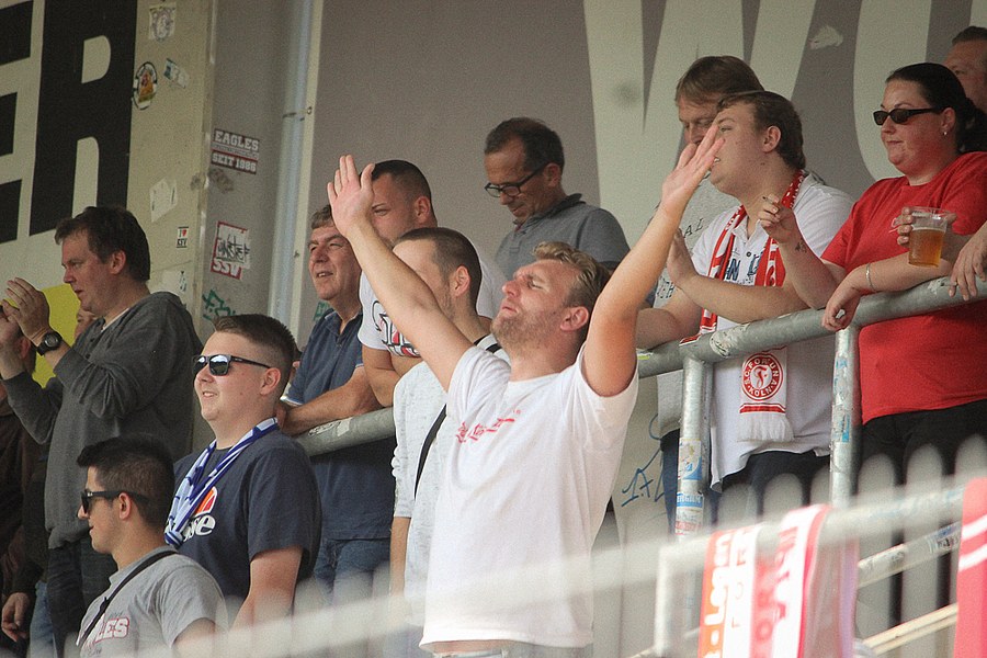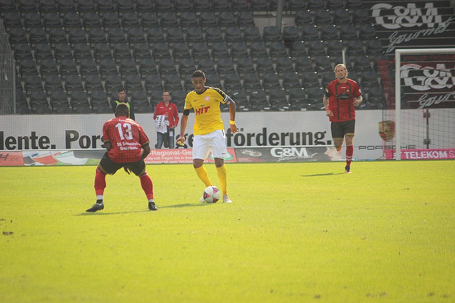 Beide Teams tasteten sich vorsichtig in die Partie. Die Gastgeber agierten dabei in einer Dreierkette im 3-4-3 und sorgten für das erste Ausrufezeichen: Nach einem Abstimmungsfehler der Fortuna tauchte Röttger frei vor Boss auf und schob gegen drei Kölner zur frühen Großaspacher Führung ein (6.). Die Südstädter waren von dem frühen Rückschlag geschockt, während sich die Gastgeber tief aufreihten und auf Konter lauerten. Nach einem solchen tauchten Gyau und Röttger gefährlich im Kölner Strafraum auf (12.). Wachgerüttelt von einem lautstarken Fortuna-Trainer Uwe Koschinat fand die Fortuna aber langsam in die Partie. So konnte man über Kegel und Brandenburger das Spiel mehr in die Hälfte der SG verlagern. Mit einem Geniestreich gelang dann der Ausgleich: Aus dem Halbfeld hob Kegel den Ball gefühlvoll hinter die Viererkette von Großaspach. Dort blieb Dahmani dann frei vor Broll eiskalt und schob zum 1:1 ein (20.).