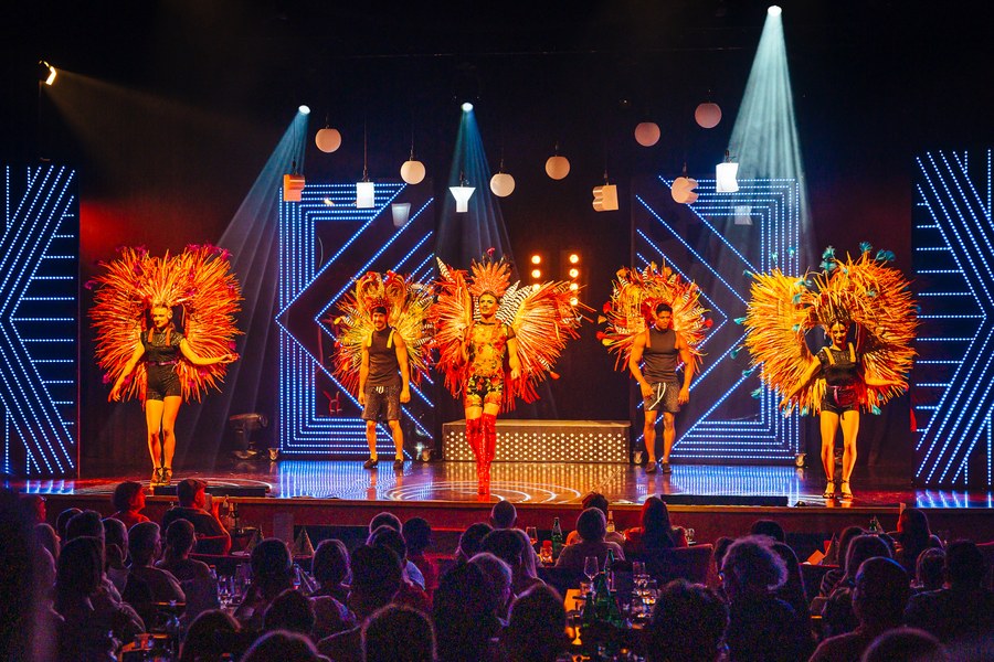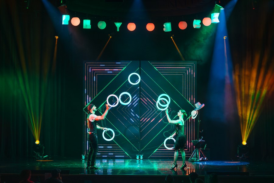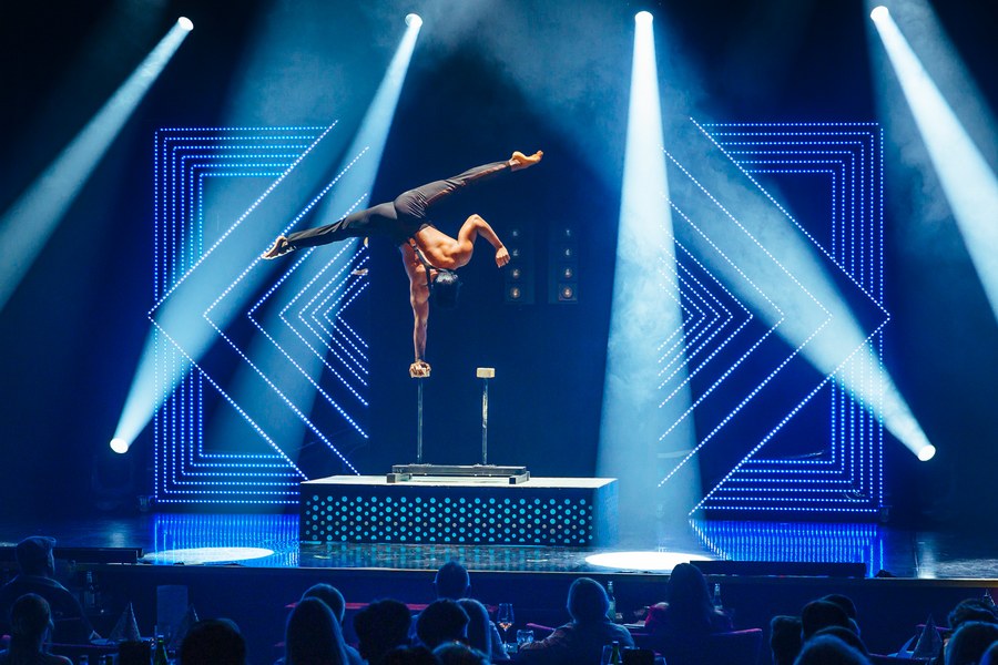 Ein echtes Highlight des Abends war auch die aktuelle Varieté-Show „Playback – überraschend live“. Was wie eine Show im Retro-Look beginnt, entwickelt sich schnell zu einem mitreißenden Mix aus perfekt choreografiertem Playback, atemberaubender Artistik, verblüffender Körpersprache und ganz viel Augenzwinkern. Ob in der Luft, auf dem Boden oder mitten im Publikum – das Ensemble liefert eine Show, die überrascht, berührt und begeistert.