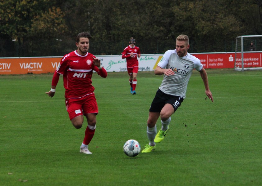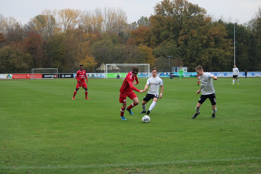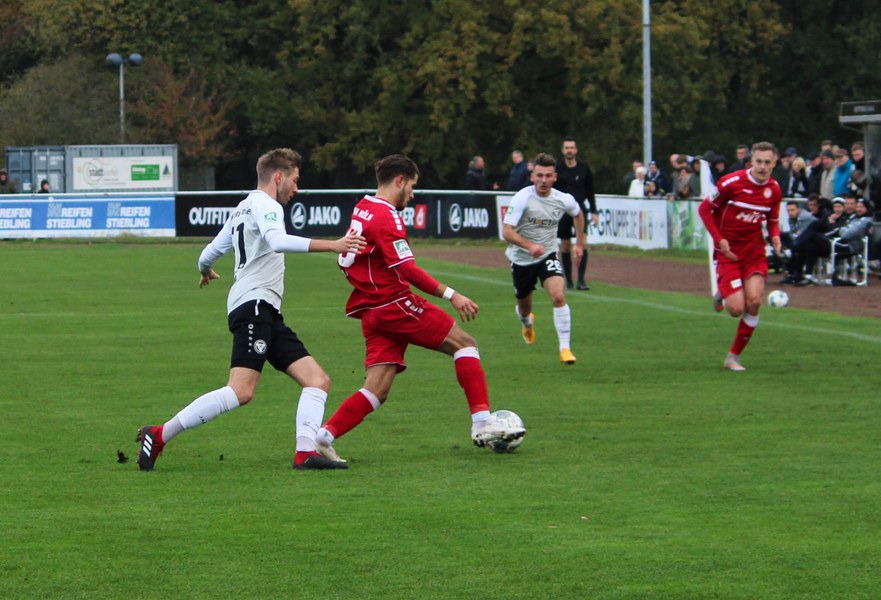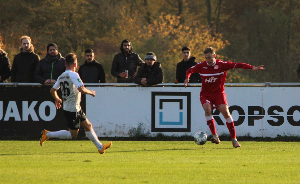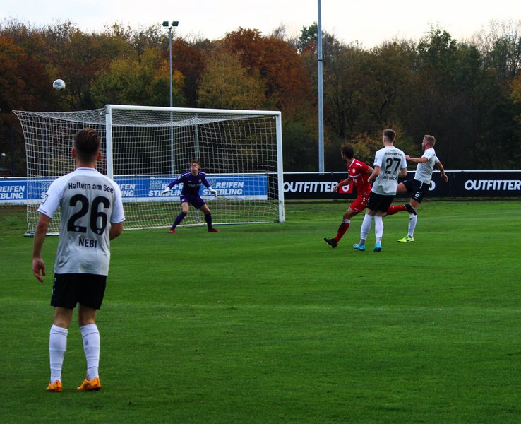 Gegen Haltern war die Geduld der Fortuna gefragt. Haltern ließ Fortuna kommen und lauerte auf die Umschaltmomente. Die Südstädter versuchten es meist über die aktive rechte Seite. Nico Ochojski suchte mit seinen Flanken die Mitspieler, fand jedoch meisten Haltern-Keeper Rafael Hester (8./11.). So sorgte ein Freistoß für das erste große Raunen in der Stausee-Kampfbahn. Franko Uzelac trat zum Freistoß an und zog ihn in gewohnter Manier direkt auf das Tor. Nur Zentimeter setzte er zu hoch an und jagte den Ball über die Latte (16.). Haltern kam ein bisschen besser in das Spiel und tauchte erstmals gefährlich vor dem Tor von Rauhut auf. Arda Nebi rückte über die rechte Seite vor und setzte zum Schluss an. Dieser prallte von Uzelacs rücken erneut vor die Füße von Nebi, der den zweiten Versuch nur knapp über die Latte setzte (22.). Fortuna blieb geduldig und nutzte den nächsten Freistoß für die Führung. Jannes Hoffmann zog den Ball direkt auf das Tor. Hester streckte sich und klärte den Ball kurz vor der Latte – allerdings vor die Füße von Uzelac, der den Ball über die Linie drückte (31.). Nur drei Minuten später tauchte Prokoph vor dem Kasten von Haltern auf, legte den Ball im Fallen allerdings daneben. Kurz vor dem Pausenpfiff hieß es dann noch einmal durchatmen für Fortuna. Haltern zimmerte den Ball an die Latte. Von dort aus landete das Spielgerät vor der Linie und die Südstädter beförderten den Ball aus der Gefahrenzone (45.). Es war die letzte Aktion vor dem Pausenpfiff.