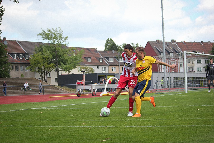 Für die zweite Hälfte wechselte Koschinat acht Spieler aus, ließ nur mit Rehnen, Fritz und Kegel drei Spieler aus der ersten Hälfte auf dem Platz. Auch die Essener wechselten viel. So war es nicht verwunderlich, dass es fast zehn Minuten brauchte, bis sich die Heimmannschaft erstmals an den Kasten von Nicolai Rehnen in Person von Marcel Platzek annäherte, der den Ball aus aussichtsreicher Position nicht selbst abschloss, sondern nochmal zu unpräzise querlegte (54.). Kurz darauf jubelten die Essener, weil Platzek den Ball nach einer Flanke aus kurzer Distanz ins Tor beförderte, allerdings stand er zuvor im Abseits (58.). Mit der neu formierten Mannschaft fiel es der Fortuna in der zweiten Halbzeit etwas schwerer, den Ballbesitzanteil hoch zu halten. Mitte der zweiten Hälfte wussten die Rot-Weißen gefährlichere Dinge mit dem Ball anzustellen. Doch mit Nicolai Rehnen hatte die Fortuna einen optimalen Rückhalt im Tor. Als Aydin allein auf ihn zulief, konnte Rehnen stark parieren und die Fortuna vor einem Gegentor bewahren (70.). Die Fortuna war in der Schlussphase der Partie eher die reagierende Mannschaft. Jedoch strahlte sie bei einem gut gespielten Angriff nochmals etwas Gefahr aus, als Ceylan aus halblinker Position den Schlussmann der Essener prüfte (81.). Viel passierte dann nicht mehr, sodass die Partie torlos mit 0:0 endete.