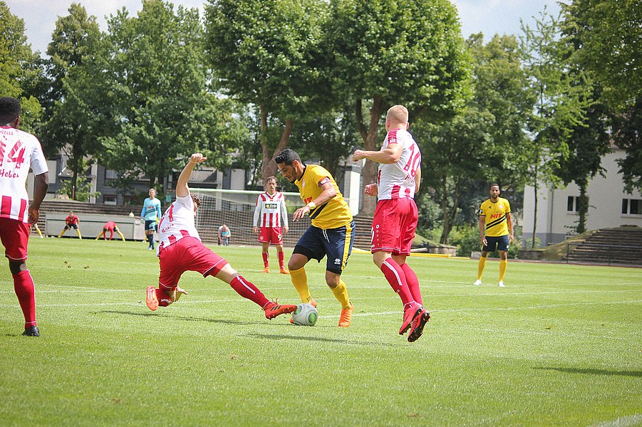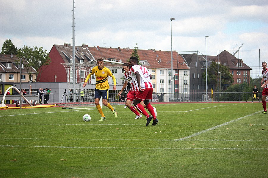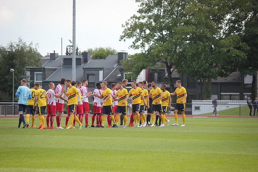 Uwe Koschinat ließ für das zweite Testspiel der Vorbereitung neben den Verletzten Spielern auch Maurice Exslager, Kristoffer Andersen und Moritz Hartmann zu Hause. Dennoch: Die Motivation, die beide Mannschaften ab der ersten Minute auf den Rasen brachten, zeigte, wie viel Lust die Spieler wieder auf Fußball hatten. Die Fortuna kam gut in die Partie, musste aber schon zu Beginn aufpassen, als Platzek's Hereingabe fast auf dem Fuß des mitgelaufenen Freiberger landete (4.). Nach einer knappen Viertelstunde zeichnete sich ein leichtes Chancenplus für die Gastgeber ab, die in kurzer Zeit gleich zwei Mal dem Führungstreffer nah waren (11., 13.). Den ersten Torschuss der Fortuna steuerte Kegel, der sich um die Ordnung im Aufbauspiel bemühte, mit einem satten Schuss bei, der das Tor nur knapp verfehlte (17.). Rot-Weiss Essen störte die Fortuna im Aufbauspiel schon früh und lief hoch an, wodurch sie die Fortuna unter Druck setzten. Nach einer Balleroberung landete die Flanke bei Freiberger, der nur am exzellent parierenden Rehnen scheiterte (20.). Danach kehrte etwas Ruhe in die Partie ein und es gelang der Fortuna, den Ball auch über mehrere Stationen laufen zu lassen. In der Offensive rotierte die Mannschaft von Uwe Koschinat sehr häufig, was die Essener aber zu verteidigen wussten. Das hohe Anlaufen der Heimmanschaft ließ nach einer halben Stunde etwas nach, wodurch der Ballbesitzanteil der Fortuna stieg. Zwingendste Offensivaktion war ein Kopfball von Fritz (35.). Im folgenden Verlauf gelang es keinem der beiden Teams, nennenswerte Offensivgefahr herauf zu beschwören. Somit ging es mit 0:0 in die Pause.
