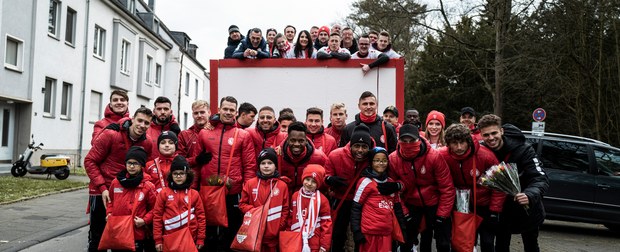 Sowohl die 1. Mannschaft mit dem Trainerstab, wie auch die Geschäftsstelle, einige Jugendspieler und Teile des Vorstandes haben sich auf die Strecke durch Zollstock gemacht und Süßigkeiten und Blumen verteilt. Dabei freuten sich die Akteure vor allem über die vielen bekannten Gesichter in rot und weiß auf der Strecke.