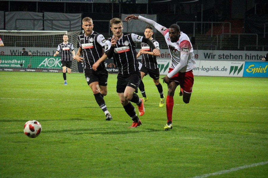 Die Bedeutung des Spiels war den Aktionen von der ersten Minute an anzumerken. Beide Teams agierten erst einmal sehr kontrolliert. Damit waren klare Möglichkeiten am Anfang Mangelware. Nach zehn Minuten sicherte sich Fortuna Köln mehr Spielanteile. Doch nach Foul von Robin Scheu bekam Aalen in der 19. Minute eine gute Freistoßchance. Nikolai Rehnen parierte den Linksschuss von Nicolas Sessa aus 28 Metern mit beiden Händen. Fünf Minuten später war es Stephan Andrist, der aus aussichtsreicher Position am Kölner Keeper scheiterte. Auch in der 30. Minute bewahrte Rehnen die Fortuna vor einem Rückstand. Ein Kopfball von Andrist nur 60 Sekunden später ging zum Glück der Südstädter ebenfalls knapp am Tor vorbei. Ein Schuss von Antonios Papadopoulos aus 16 Metern landete ebenso über dem Tor (36.).