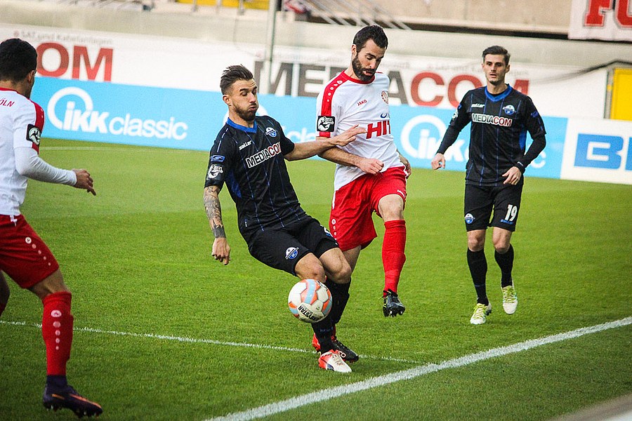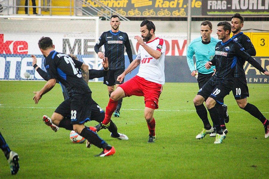 Die Gastgeber nahmen den Schwung aus dem Ende der ersten Halbzeit aber mit: Nach einem Konter musste Poggenborg so vor Michel klären (51.). Die Westfalen wollten sich hier nicht kampflos geschlagen geben und zwangen die Fortuna nun mehr in den Rückwärtsgang. Die Fortuna schaffte es aber, den Gästen den Spielfluß zu nehmen. So passierte lange wenig, auch weil die Fortuna ihre Konter nicht mit der letzten Konsequenz zu Ende bekam. So fand Dahmani von der Grundlinie aus keinen Abnehmer (68.). Paderborn tat sich aber weiter schwer, Chancen zu erspielen. Erst nach einer direkten Ecke musste Poggenborg eingreifen (72.). Kurz darauf prüfte der eingewechselte Dedic den Fortuna-Schlussmann (77.). Die Fortuna fokussierte sich nun mit aller Kraft auf die Defensive, um in der englischen Woche den dritten Sieg mitzunehmen. Aus dem Nichts dann aber der Ausgleich: Eine scharfe Hereingabe von Bickel brachte Dedic im Kölner Tor untr (86.). Die Fortuna hatte aber die erneute Führung auf dem Fuß: Einen Querpasss von Souza bugsierte Bender aus kurzer Distanz das Tor (87.). Am Ende blieb es beim Remis, auch wenn Theisen mit gelb-rot nach wiederholtem Foul vom Platz musste.