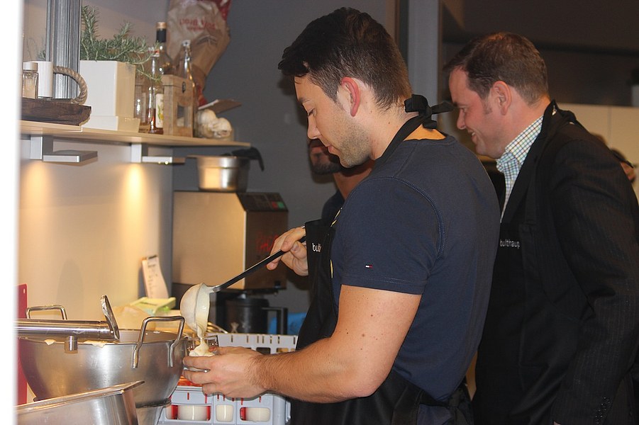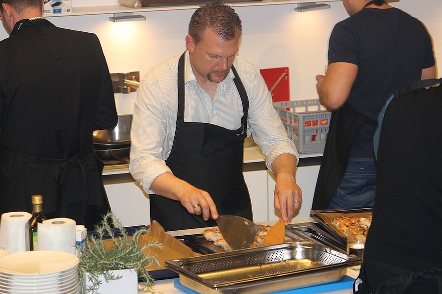 „Bulthaup am Mediapark“ bot der Fortuna dabei den perfekten Rahmen für ein außergewöhnliches Kochevent: Im alten Eichamt von Köln, hat Tobias Vianden, Geschäftsführer von „bulthaup am Mediapark“, nunmehr seit vier Jahren seine Räumlichkeiten gefunden. „Wir freuen uns einem namhaften Verein wie Fortuna Köln mit seinen Partnern einen besonderen Abend bieten zu können. Selten haben wir eine so harmonische Gruppe erlebt, die sich sofort zum gemeinsamen Kochen zusammen gefunden hat“, freute sich Vianden über einen gelungenen Abend.