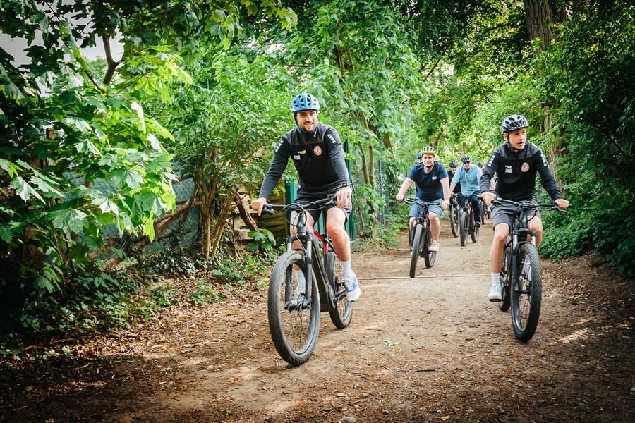 Am Donnerstag, den 12. Mai, lud der treue Fortuna-Partner, das Zweirad-Center Prumbaum, zusammen mit der eurorad Deutschland GmbH in Dellbrück erneut zum alljährigen E-Bike Event ein. Das Radsportvergnügen wurde auch dieses Jahr tatkräftig von zwei Spielern unserer Fortuna unterstützt: Andre Weis und Timo Hölscher, sowie der neue Teammanager Simon Gasper und Co-Trainer Zlatko Muhovic schlossen sich bei sommerlichen Temperaturen an.