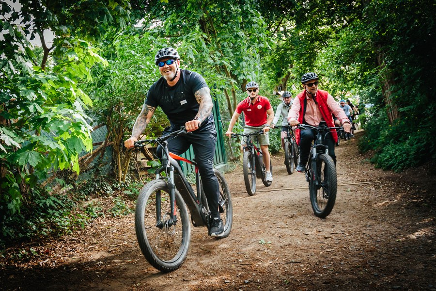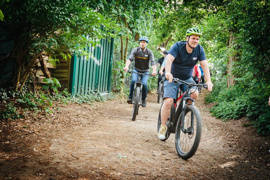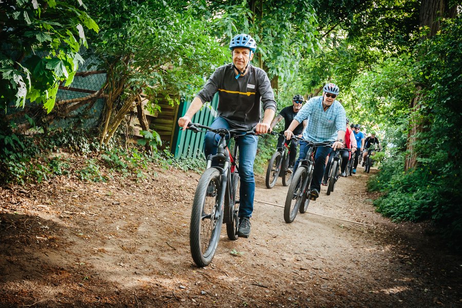 Ein sportliches Partner-Event mit großer Teilnahmelust stand am Donnerstagnachmittag auf dem Programm der über 35 geladenen Gäste. Treffpunkt in Dellbrück war um 16:30 Uhr. Nachdem sich alle begrüßten folgte ein offizielles „Hallo“ erst durch unseren Geschäftsführer Benjamin Bruns und anschließend durch den Geschäftsführer des Zweiradcenters Prumbaums Jörg Prumbaum. Nachdem die freundliche Begrüßungsrunde vollendet wurde, ging das Programm zum sportlichen Teil über. Im Angebot standen zwei verschiedene geplante Routen mit unterschiedlichen Schwierigkeitsgraden. Die erste Gruppe begab sich auf die gemütlichere Strecke und die zweite Gruppe stellte sich der sportlich anspruchsvolleren. Nachdem alle E-Bikes eingestellt und individuell präpariert wurden, schwangen sich beide Gruppen endlich auf den Sattel.