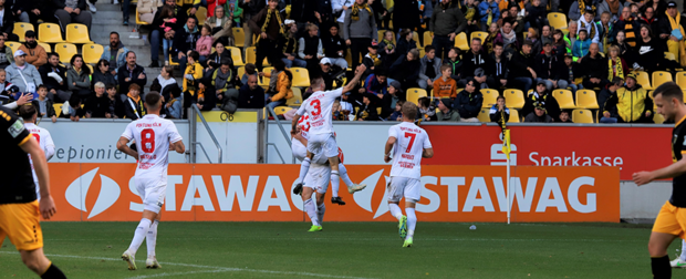 Die zweite Hälfte startete mit einem Paukenschlag. Alemannia-Coach Fuat Kilic wechselte zunächst den bemühten, aber glücklosen Ex-Fortunen Imbongo aus und brachte Julian Schwermann. Doch die Aufmerksamkeit richtete sich auf Dino Bajric. Nach gutem Gegenpressing der Hausherren tauchte der Zentrumsspieler völlig frei halb links im Strafraum auf und jagte den Ball mit links humorlos ins linke obere Eck (47.). Weis im Kölner Tor blieb ohne Chance. Fortuna reagierte keineswegs geschockt und war sofort wieder um Spielkontrolle bemüht. Die Schwarz-Gelben auf der anderen Seite blieben zu passiv und reagierten nur auf die Angriffsbemühungen von Fortuna Köln. Folgerichtig kam dann auch der Kölner Ausgleich in der 61. Minute. Willms führte einen Freistoß geistesgegenwertig kurz auf Maik Kegel aus. Dieser flankte aus dem rechten Halbfeld mit Zug an den Fünfmeterraum, wo Lars Lokotsch per Flugkopfball verpasste. Den Abpraller setzte Sascha Marquet unter die Latte und ins Tor. Auch danach kam es zu Abschlüssen auf beiden Seiten, ohne dass sich eine Mannschaft in der zweiten Hälfte klare Vorteile herausspielen konnte. Dann kam die 79. Minute und die Riesenchance der Alemannia. Marco Müller tankte sich über links in den Strafraum und spielte quer auf den völlig freistehenden Exauce Andzouana, der aus fünf Metern nur noch einschieben musste. Der Stürmer schoss Fortuna-Keeper Weis an und verpasste die große Gelegenheit, seine Mannschaft wieder in Führung zu bringen. Die 10.400 Zuschauer und alle Akteure auf dem Platz fragten sich nach dieser Aktion, wie der Ball nicht im Netz zappeln konnte. Und so kam es wie es kommen musste und den Südstädtern gelang der Lucky Punch drei Minuten vor Schluss. Arnold Budimbu konnte sich gegen zwei Spieler halbrechts durchsetzen, drang in den Strafraum ein und spielte einen flachen Querpass. Dort ging Marquet gegen Heinze und Bangsow in den Zweikampf. Infolgedessen hüpfte der Ball zu Lokotsch, der freistehend zur Kölner Führung einschob (88.). Mit dem umjubelten Führungstreffer kämpfte die von Ahlen-Truppe bis zur letzten Minute und fährt mit drei Punkten im Gepäck zurück nach Köln.