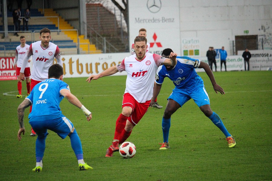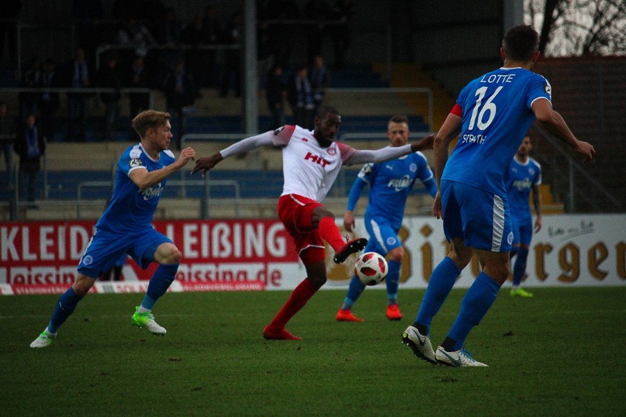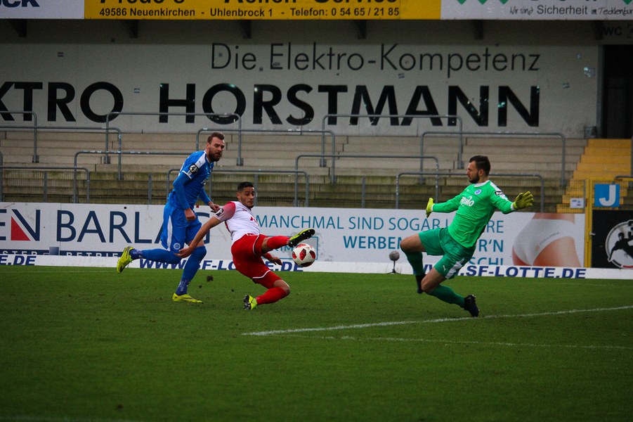 Lotte erwischte den besseren Start. Maximilian Oesterhelweg verfehlte mit seinem Flachschuss in der dritten Minute allerdings das Tor der Gäste. Durchatmen bei den Südstädtern dann vier Minuten später: Nikolai Rehnen hielt einen Schuss von Toni Jovic nicht fest. Aber selbst den Nachschuss aus kurzer Distanz – wenn auch aus einer Abseitsposition – parierte er.