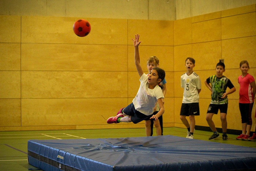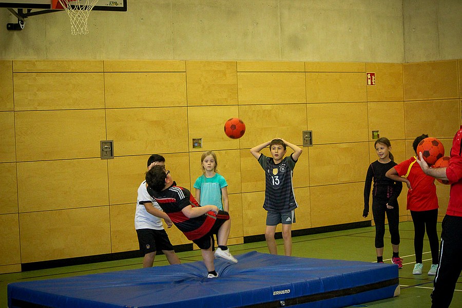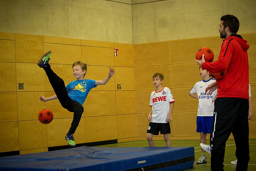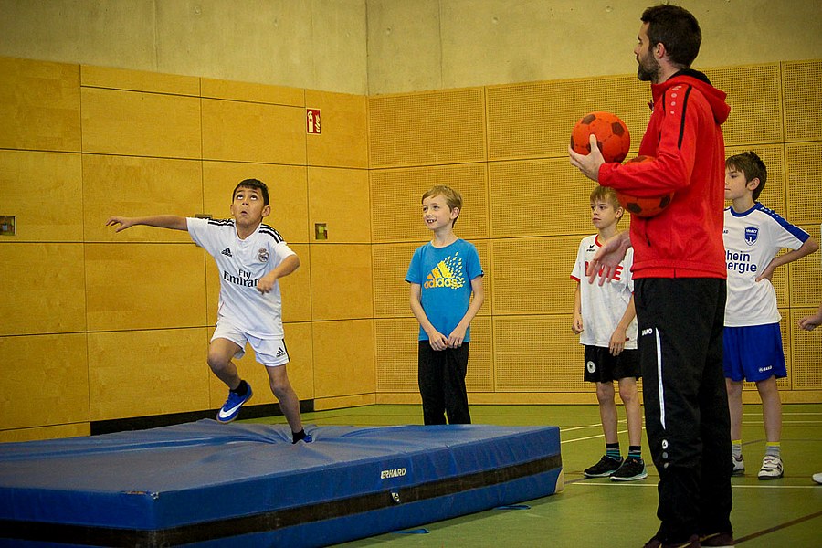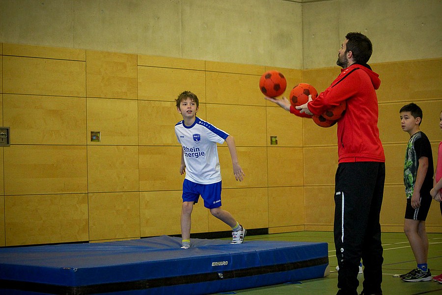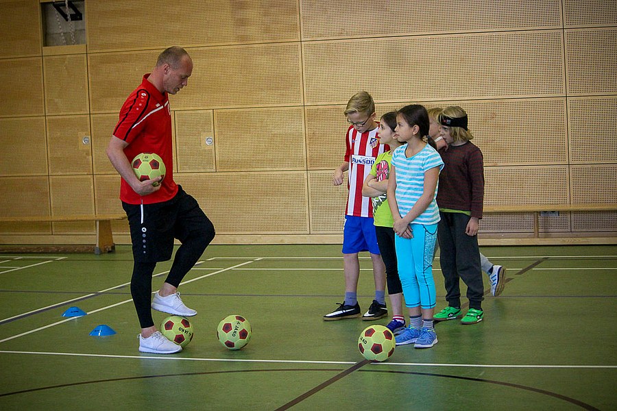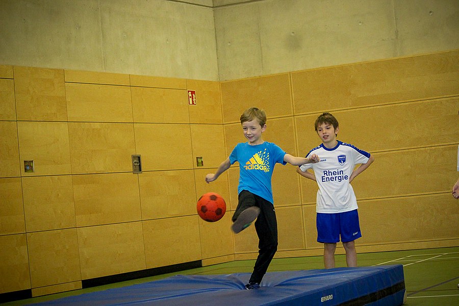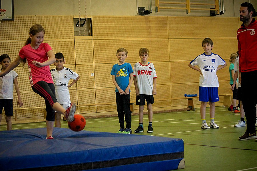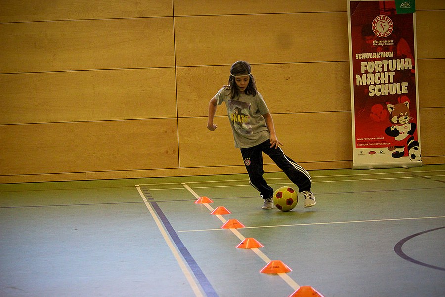 Zunächst trafen sich Fortuna-Spieler und die Schulkinder der Klassen 4a und 4b in der Turnhalle. Dort ging es natürlich schnell in den aktiven Teil des Programms über. Die Trainingseinheit gestaltete sich vielseitig. Im Hütchen-Parkour konnten sich die Schüler im Dribbling beweisen. Dank Sportmatte waren sogar gewagtere Aktionen, wie beispielsweise Fallrückzieher möglich. Nachdem man viel Energie im Training gelassen hatte, folgte mit einer Autogrammstunde ein ruhigerer Programmpunkt. An dieser Stelle war es für die Schüler natürlich wieder möglich Fragen an die Profis zu richten. Die Schülergruppe hatte sich zu diesem Zeitpunkt bunt durchgemischt, nun waren auch Kinder aus den Schulklassen eins bis drei vertreten. Andersen, Poggenborg und Souza wurden viele Autogramme los und verabschiedeten sich anschließend nach einem ereignisreichen Tag von den Kindern der Paul-Klee-Schule.